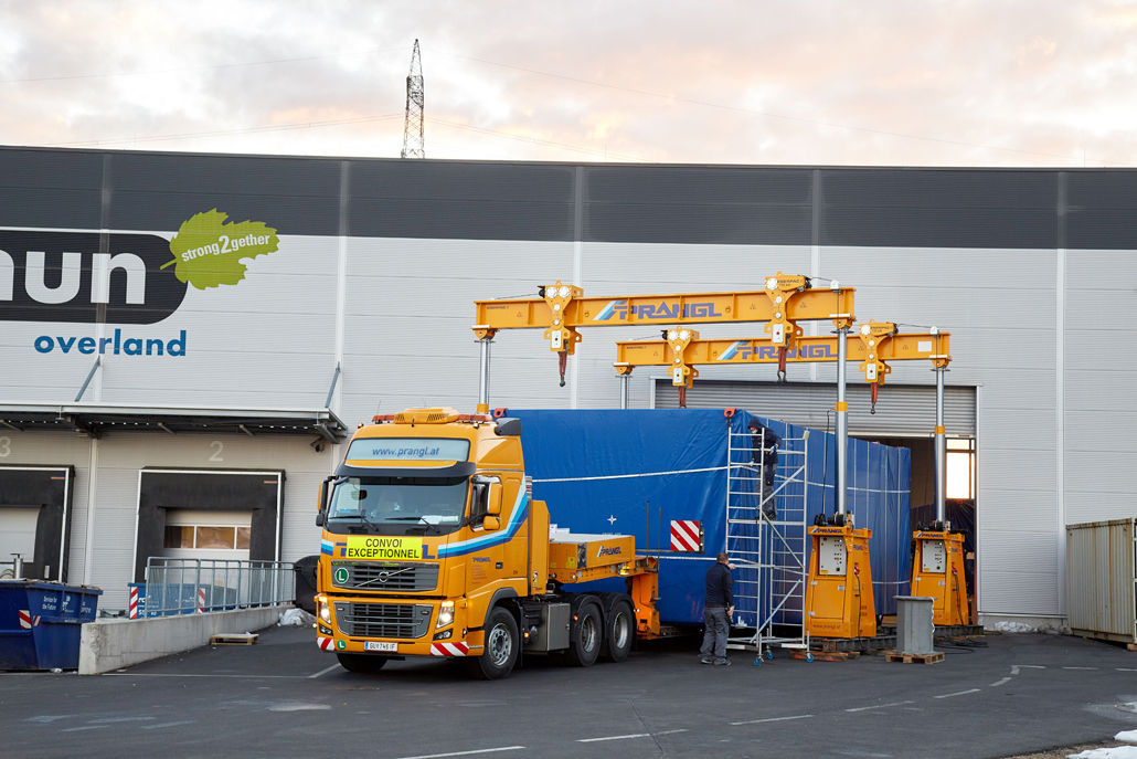 Hydraulische Hubportale werden überall dort eingesetzt, wo herkömmliche Mobilkrane aufgrund beschränkter Platzverhältnisse nicht eingesetzt werden können. Sind Lasten in engen Räumen aufzudrehen, können hydraulische Hubportale mit unterschiedlichen Abmessungen und Hubleistungen kombiniert werden. Unsere Hubportale bestehen aus mindestens zwei mehrfach teleskopierbaren Hydraulikhebern, einem Schienensystem, einem Träger und verschiedenen Anschlagpunkten. Um Lasten auch in Querrichtung verschieben zu können, können optional hydraulische Verschubsysteme auf den Portalträgern angebracht werden. Ein exaktes Positionieren der Hebegüter wird dadurch garantiert.