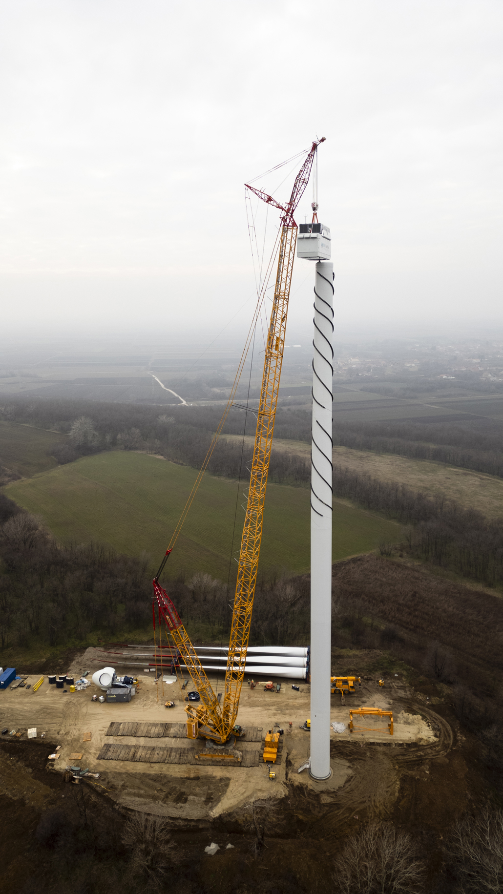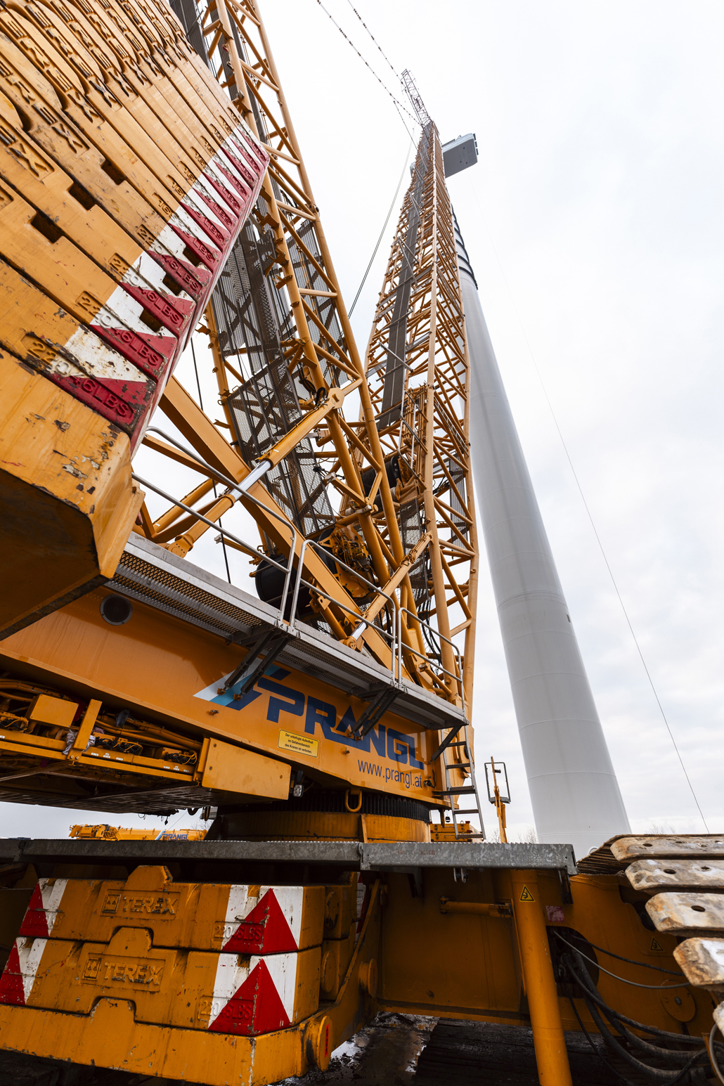Im Osten Serbiens – in Kostolac – wird ausgerechnet auf einem ehemaligen Kohleabbaugebiet bald umweltfreundliche Energie gewonnen: Der staatliche Energieversorger hat mit der Errichtung eines Windparks die grüne Wende eingeleitet und will in Zukunft den Anteil erneuerbarer Energiequellen erhöhen. Die Turbinen des neuen Windparks mit einer Höhe von je 114 Meter haben eine Nennleistung von bis zu 3,65 MW. Für die Errichtung der 20 Windkraftanlagen stellte Prangl die optimal auf diese Baustelle abgestimmten Geräte ab. Die wichtigste Rolle spielt ein 650 Tonnen Raupenkran.