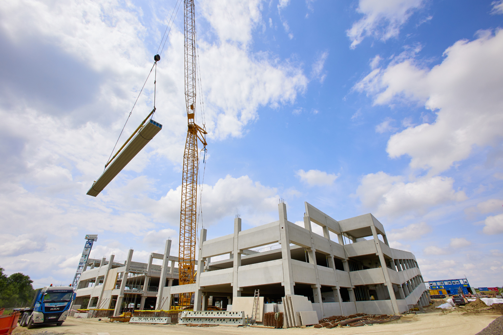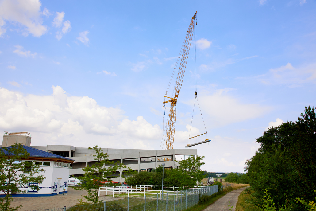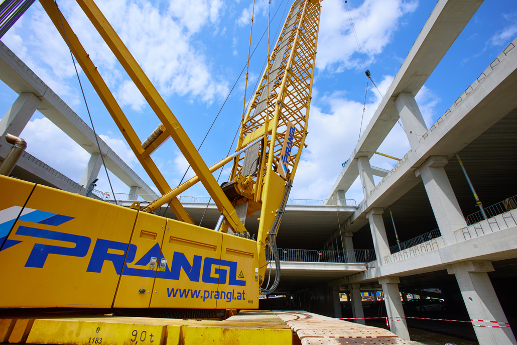 Prangl wurde für ein interessantes Bauprojekt im Norden von Wien engagiert: Das Amazon-Logistikzentrum in Großebersdorf wurde um ein neues, 14 Meter hohes Parkhaus erweitert. Die Kranarbeiten sollten so effizient und zeitsparend wie möglich durchgeführt werden. Die Planung der Abläufe war dabei die größte Herausforderung.