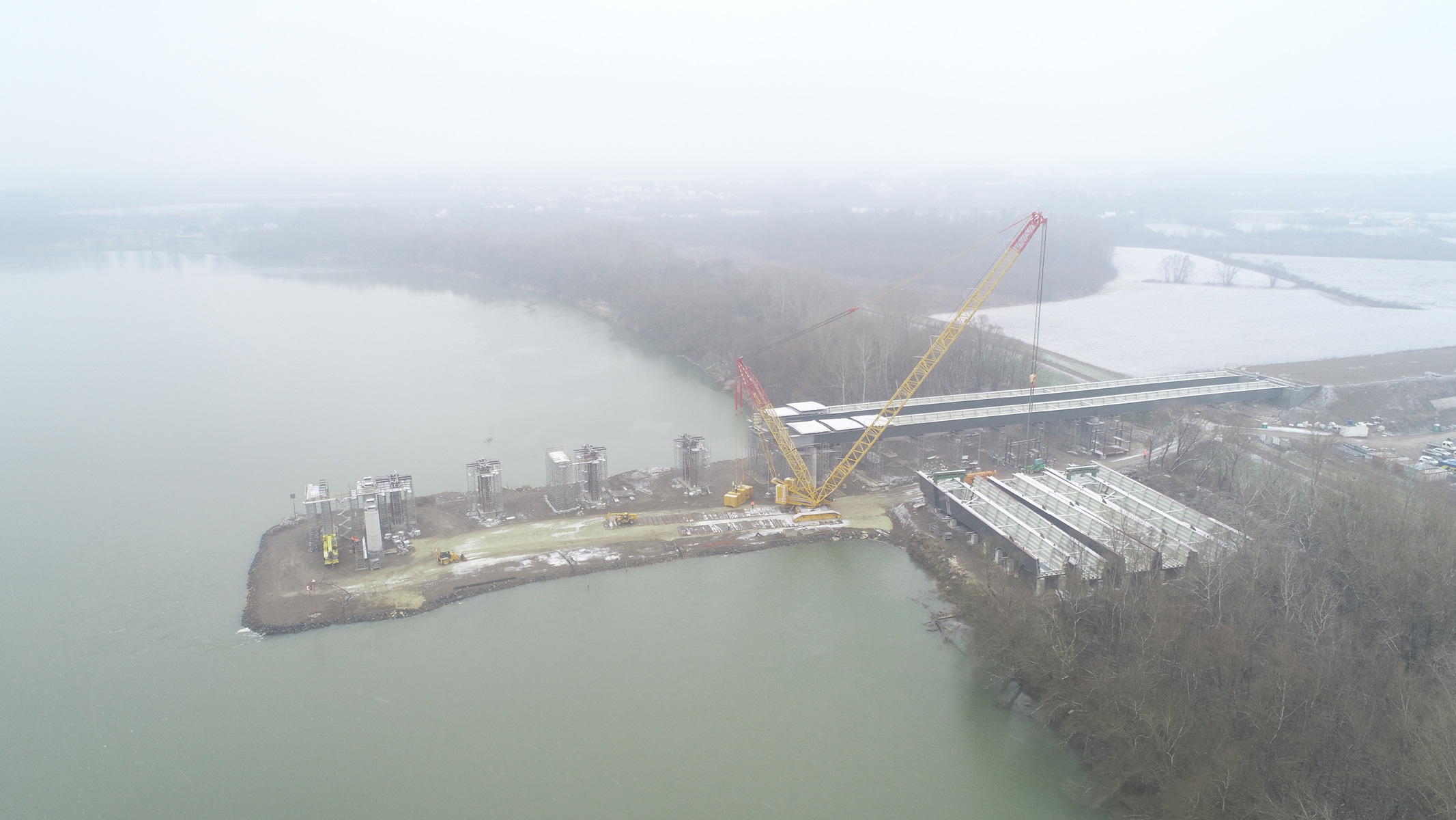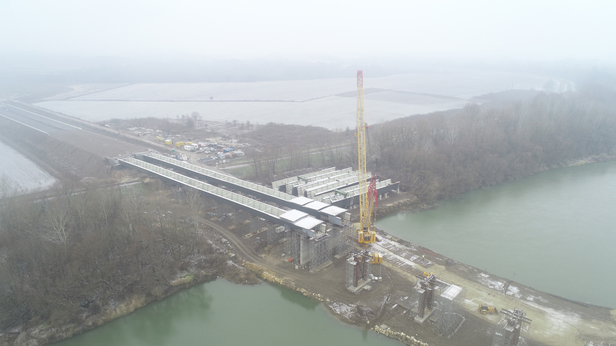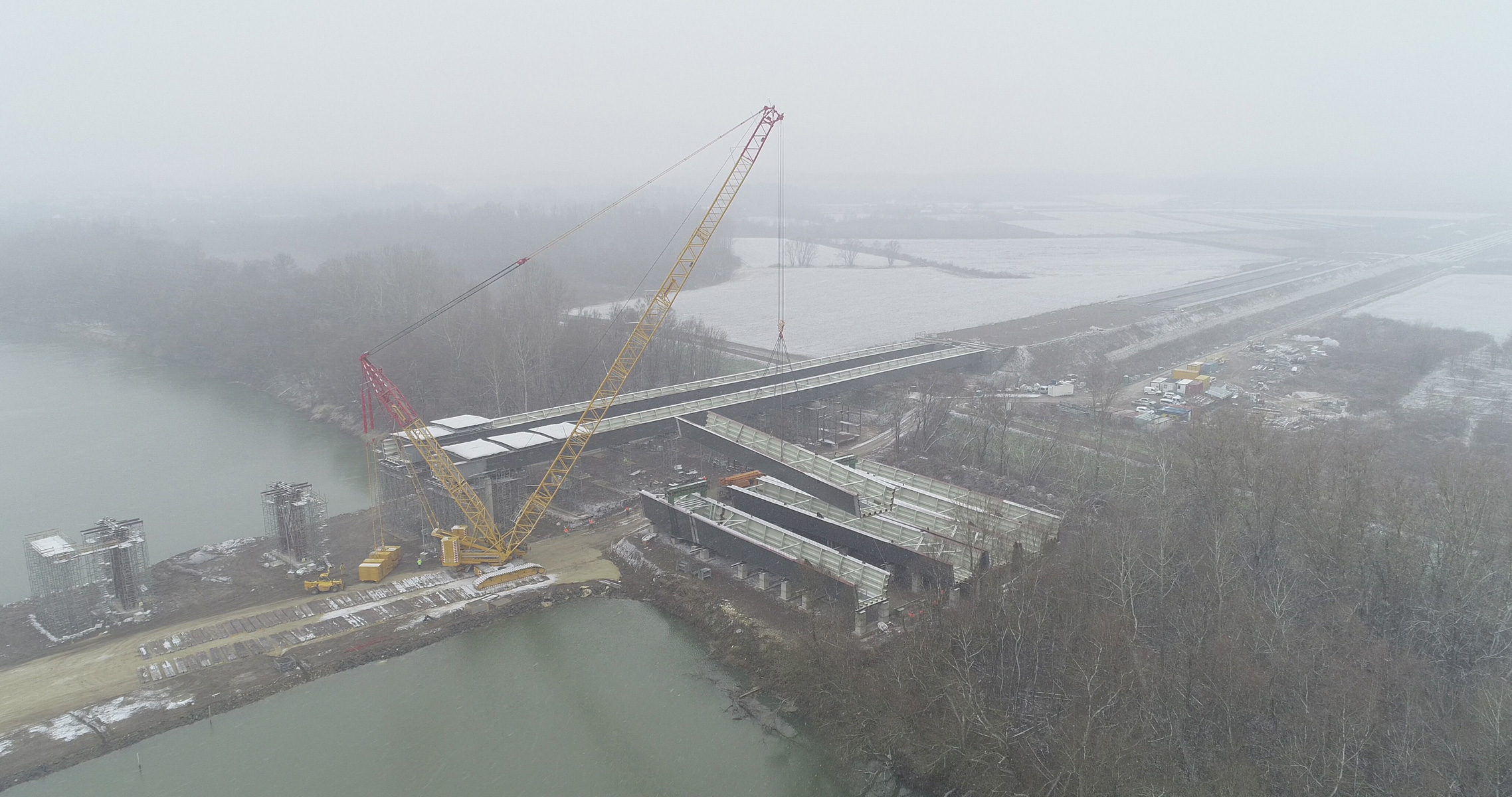 Der Straßenkorridor 5c gehört zum europäischen Autobahnnetz, das den Norden Europas mit der Adria verbindet. Die Brücke ist 660 Meter lang und 29 Meter breit. Die an Prangl gestellte Aufgabe war das Verheben von 8 Brückensegmenten mit Einzelgewichten von bis zu 225 Tonnen sowie Längen von 51 Meter und Breiten von 6,5 Meter.