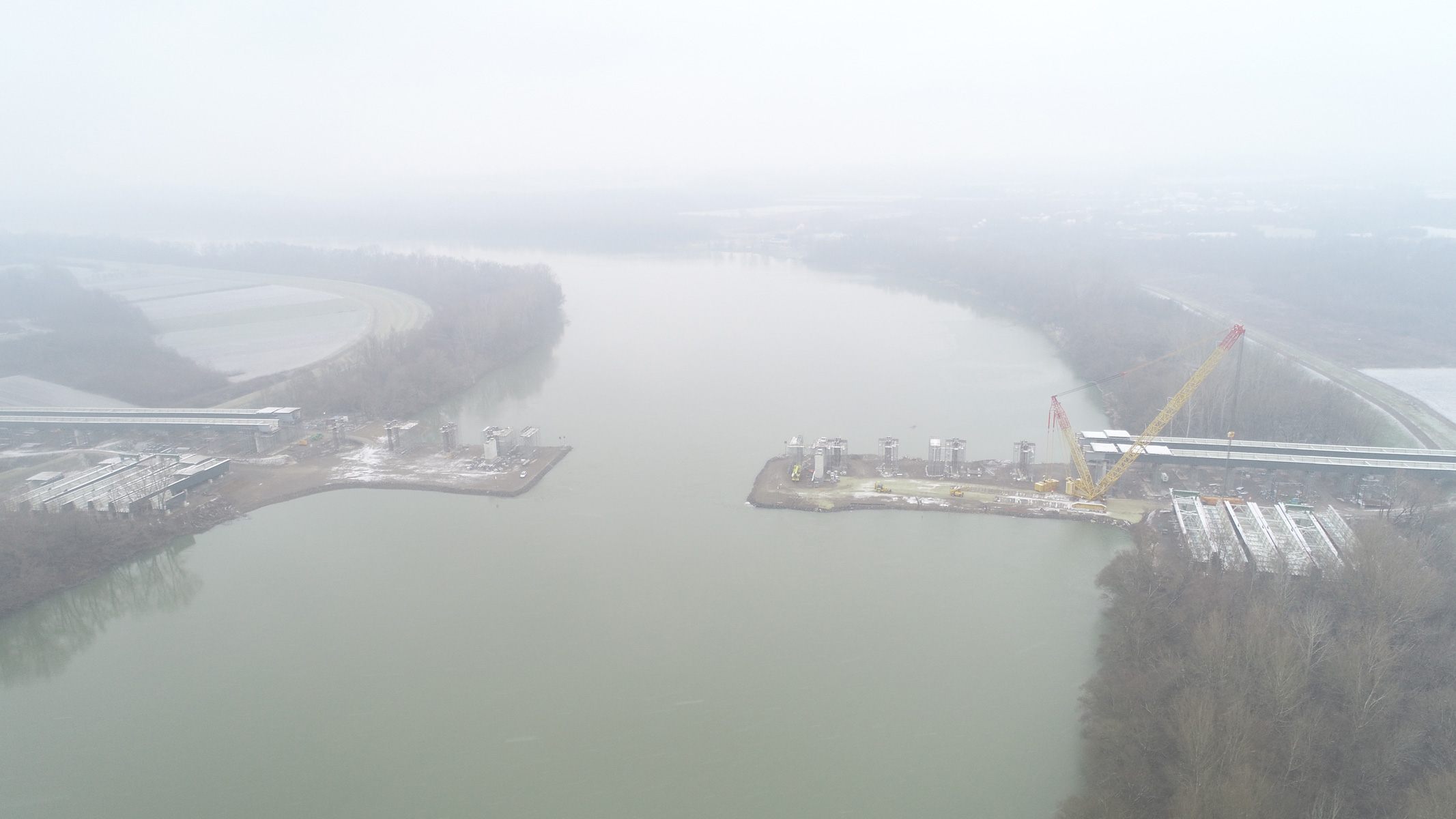 Für den Großkran wurde ein eigenes Plateau, als Stand- und Fahrfläche, in Form einer Halbinsel in die Sava gebaut. Aufgrund der ständigen Überschwemmungsgefahr wurde nicht nur der Wasserstand permanent überwacht sondern auch der generelle Zustand des Plateaus. Während der Stillstandzeit über Weihnachten wurde der Kran sogar auf eine überschwemmungssichere Ebene gebracht.