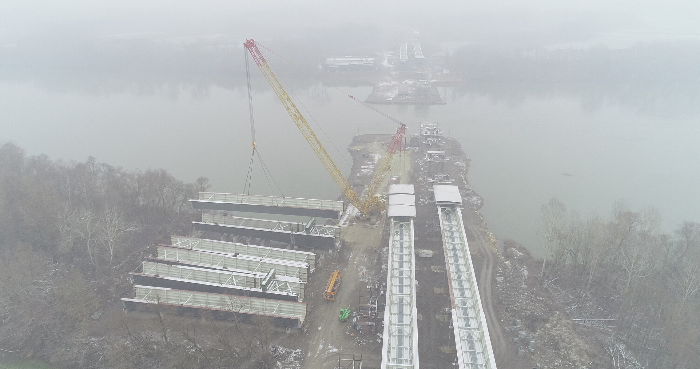 Eine der Besonderheiten dieses Auftrages war, dass der Raupenkran zuerst auf der bosnischen Baustellenseite stationiert wurde. Nachdem Bosnien-Herzegowina nicht in der EU ist, waren alle Abläufe und Wege anders und neu. Immerhin war es der erste Prangl-Einsatz in Bosnien-Herzegowina. Dank der guten Vorbereitung des kroatischen Prangl-Teams funktionierte alles tadellos. Einmal mehr konnte Prangl beweisen, dass man sich überall schnell zurechtfindet und Lösungen für lokale Gegebenheiten parat hat.