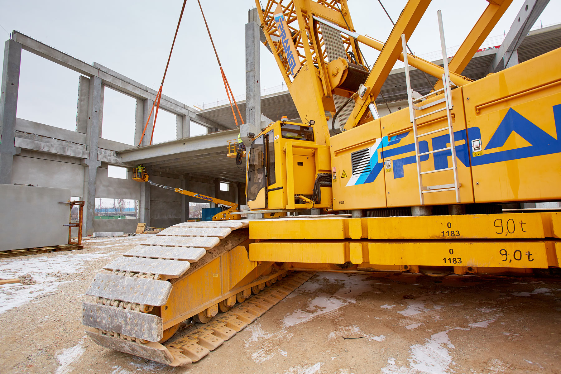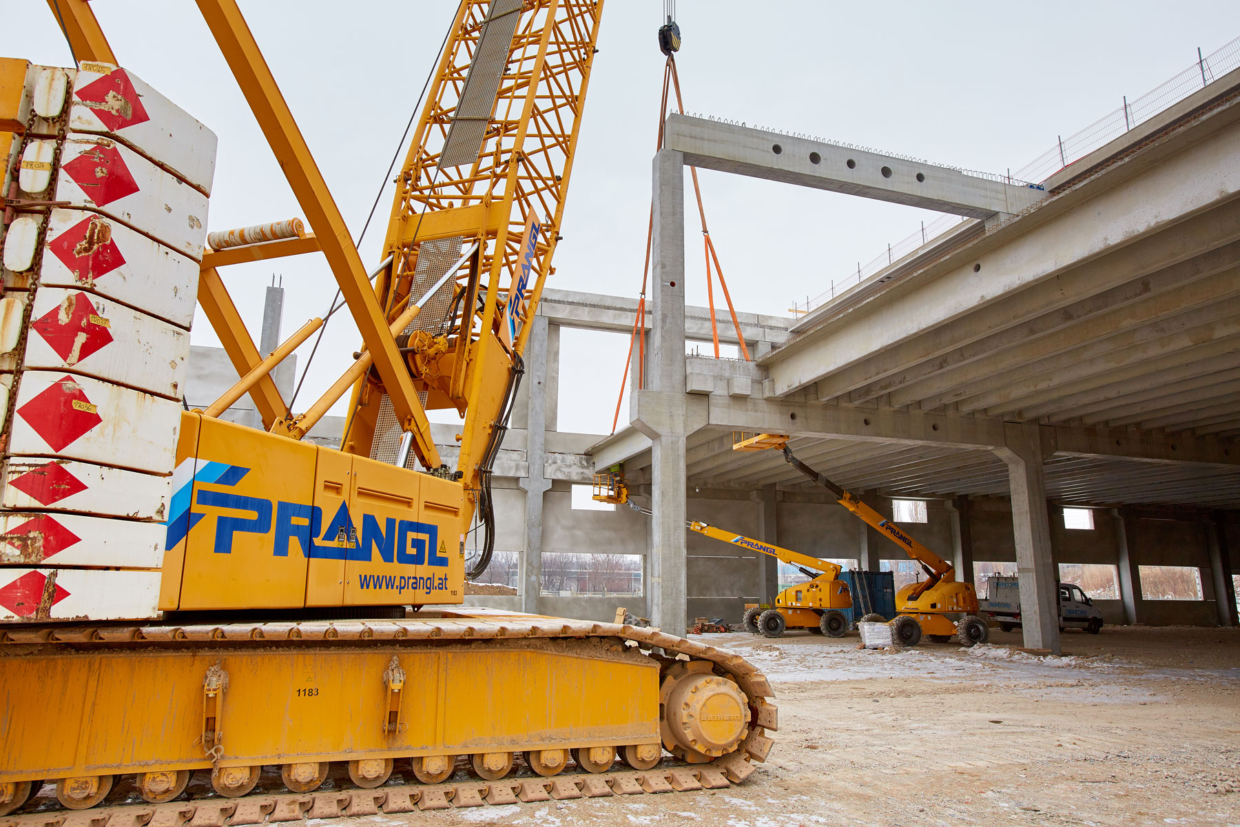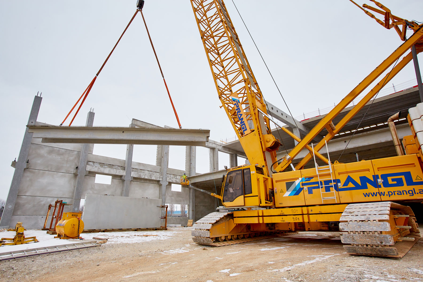 Auf ca. 10 500 m² entsteht bis Frühjahr 2019 eine neue Betriebsanlage mit Büros, Hallen, Verkaufsräumen und einem automatisierten Hochregallager. Prangl betreut die Baustelle nahezu exklusiv mit diversem Equipment, um sämtliche Betonfertigteile, wie z. B. Querträger, Dachträger und Stützen sowie alle Hohlwände und Stiegenhäuser zu verheben.