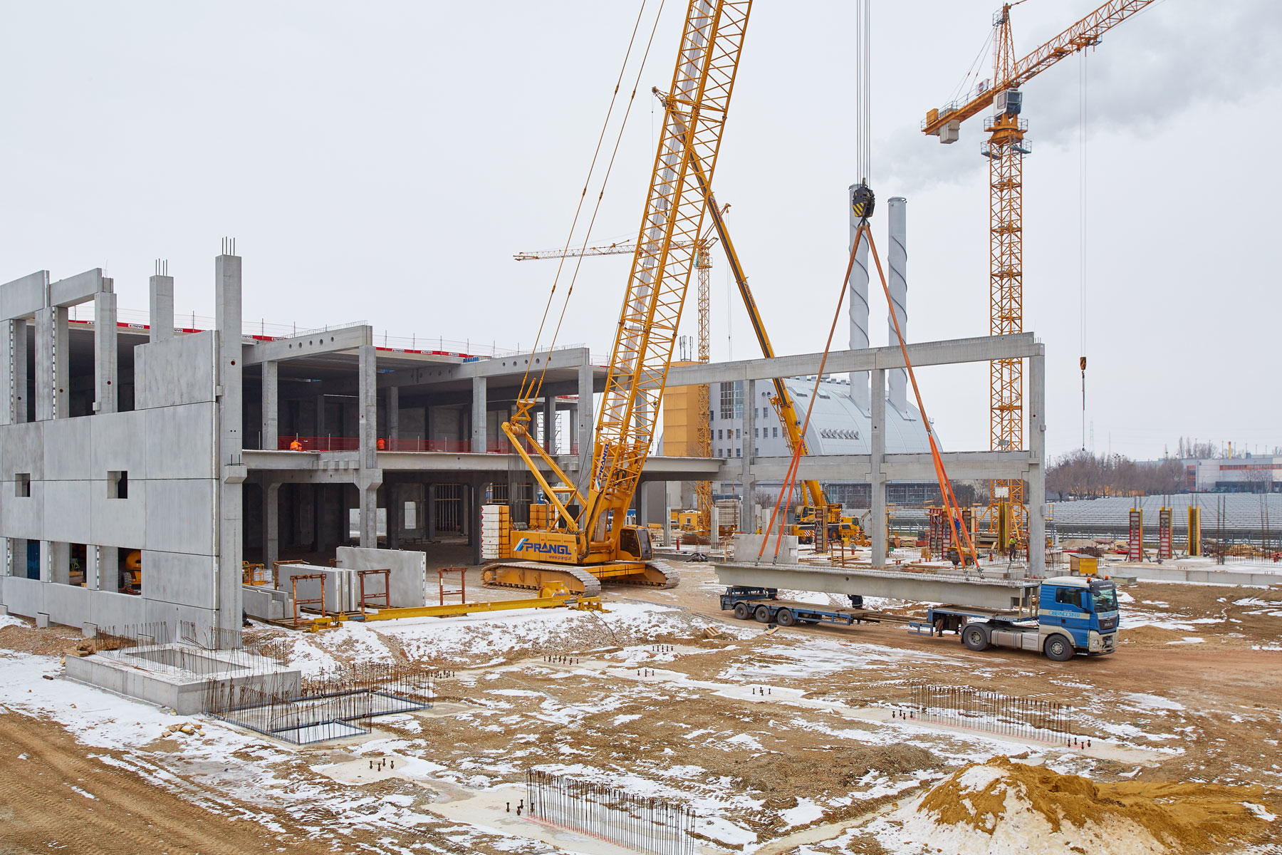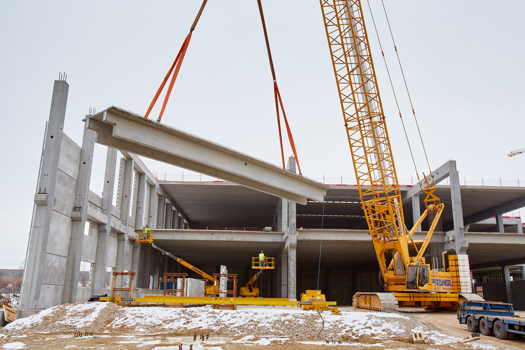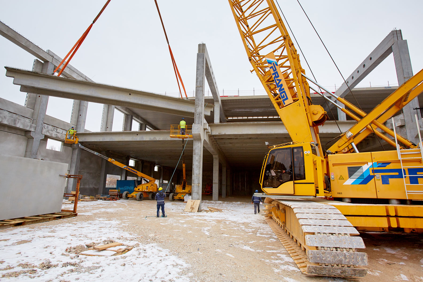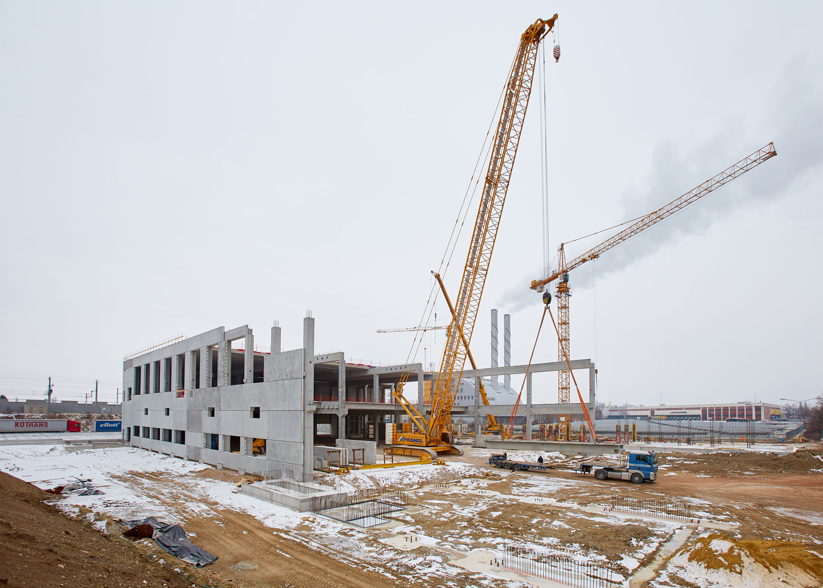 Auf ca. 10 500 m² entsteht bis Frühjahr 2019 eine neue Betriebsanlage mit Büros, Hallen, Verkaufsräumen und einem automatisierten Hochregallager. Prangl betreut die Baustelle nahezu exklusiv mit diversem Equipment, um sämtliche Betonfertigteile, wie z. B. Querträger, Dachträger und Stützen sowie alle Hohlwände und Stiegenhäuser zu verheben.