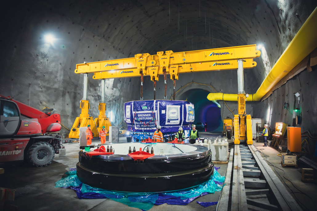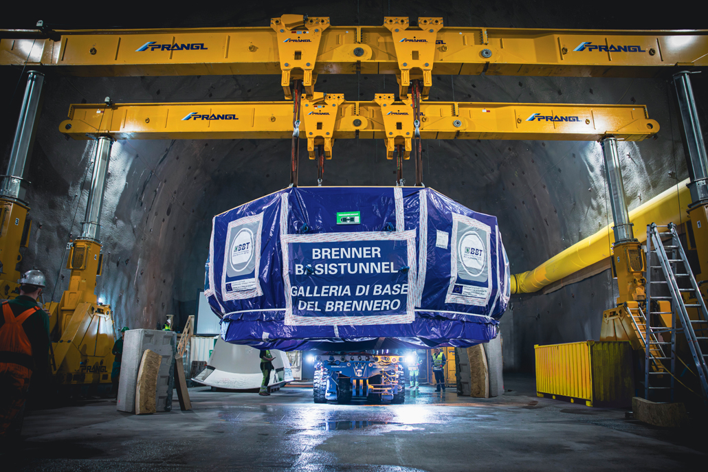 In wochenlanger, akribischer Arbeit in der Tunnelkaverne nahm “Wilma“ mit Hilfe des hydraulischen Hubportals von Prangl langsam Gestalt an und wuchs zu einer rund 180 Meter langen Super-Tunnelbohrmaschine mit einem Gesamtgewicht von 2.700 Tonnen heran. Ab Herbst wird “Wilma“ in Richtung Innsbruck starten und rund 7,50 Vortriebskilometer bis zum Nachbarbaulos “Sillschlucht-Pfons“ zurücklegen. Das Prangl-Team hat dabei einen perfekten Job gemacht und ist stolz, bei diesem so wichtigen Bauprojekt dabei gewesen zu sein.