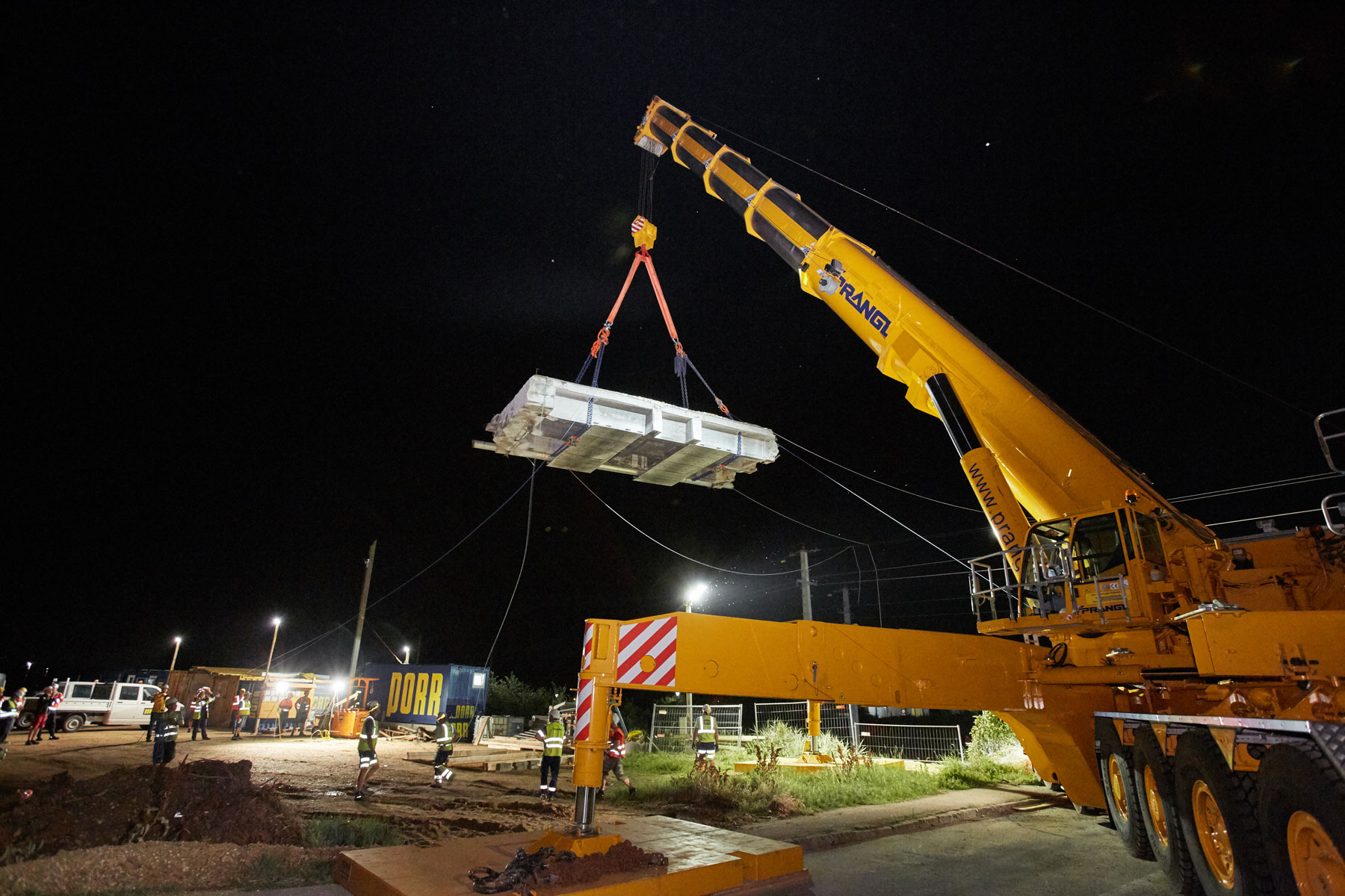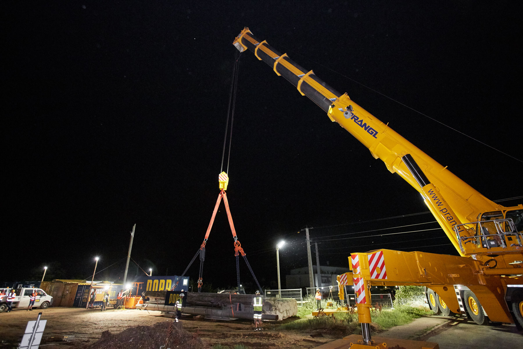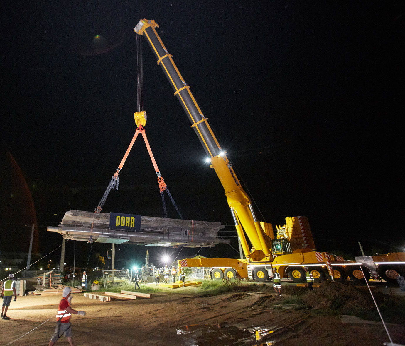 Aufgrund der Einzelgewichte von 95 Tonnen und einer Ausladung von 22 Meter war Österreichs stärkster Teleskopkran, ein 1 000-Tonner, die beste Lösung für diese Aufgabe. Jede andere Krantechnik hätte weit längere Auf- und Abbauzeiten bedeutet. Aufgrund des von der ÖBB strikt vorgegebenen Zeitplans war jede Minute ein enormer Gewinn. Die gesamte Arbeit musste zwischen 22:00 Uhr und 5:00 Uhr stattfinden. Nur in diesem Zeitraum war die Strecke gesperrt und alle betroffenen Leitungen stromlos.