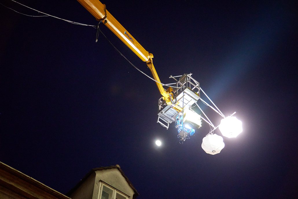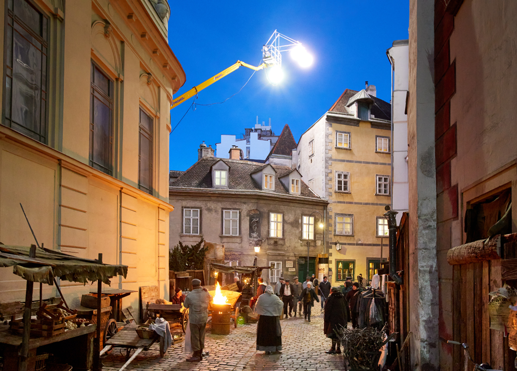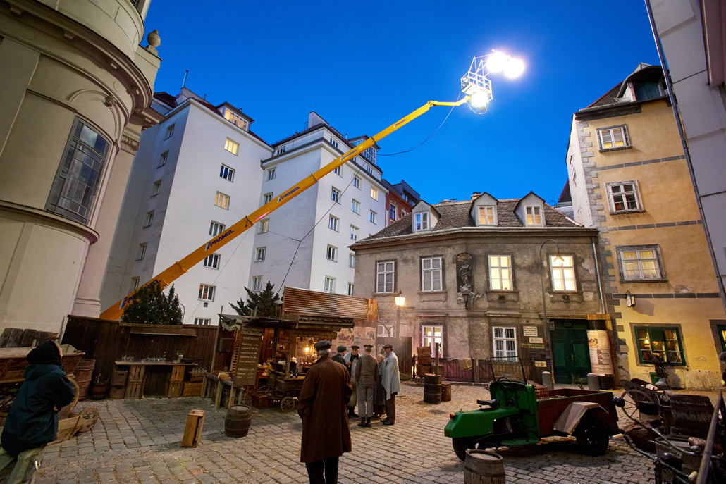 In der mit Requisiten aller Art ausgestatteten Gasse wurde eine LKW-Arbeitsbühne mit einer Arbeitshöhe von 37 Meter und einer seitlichen Reichweite von 30 Meter in Stellung gebracht, um mit Hilfe eines Schweinwerfers eine nächtliche Stimmung mit Mondlicht zu zaubern. Die Bühne wurde so positioniert, dass die von ihr getragene Beleuchtung den optimalen Effekt erzielen konnte. Und so wird es möglich, im fertigen Film eine Szene zu zeigen, die alle Zuseher in die Vergangenheit versetzt. Das Biopic, welches Kreiskys Erlebnisse zwischen 1927 und 1938 beschreibt, wird im Herbst 2025 erscheinen.