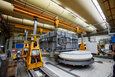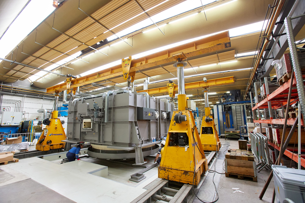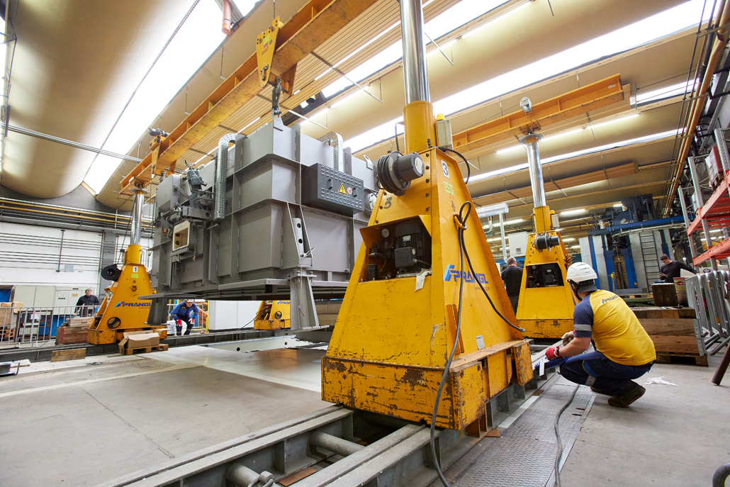 Für die Montage und das Verbringen innerhalb der Halle konnte hier wegen des mangelnden Platzes nicht wie sonst ein Mobilkran eingesetzt werden. Deshalb war ein hydraulisches Hubportal das perfekte Gerät, um den Drehofen an Ort und Stelle zu bringen. Schließlich lassen sich die Hubportale mit unterschiedlichen Abmessungen und Hubleistungen für die aktuelle Situation kombinieren. Mit mehrfach teleskopierbaren Hydraulikhebern, einem Schienensystem, einem Träger und verschiedenen Anschlagpunkten können Lasten genauestens positioniert werden.