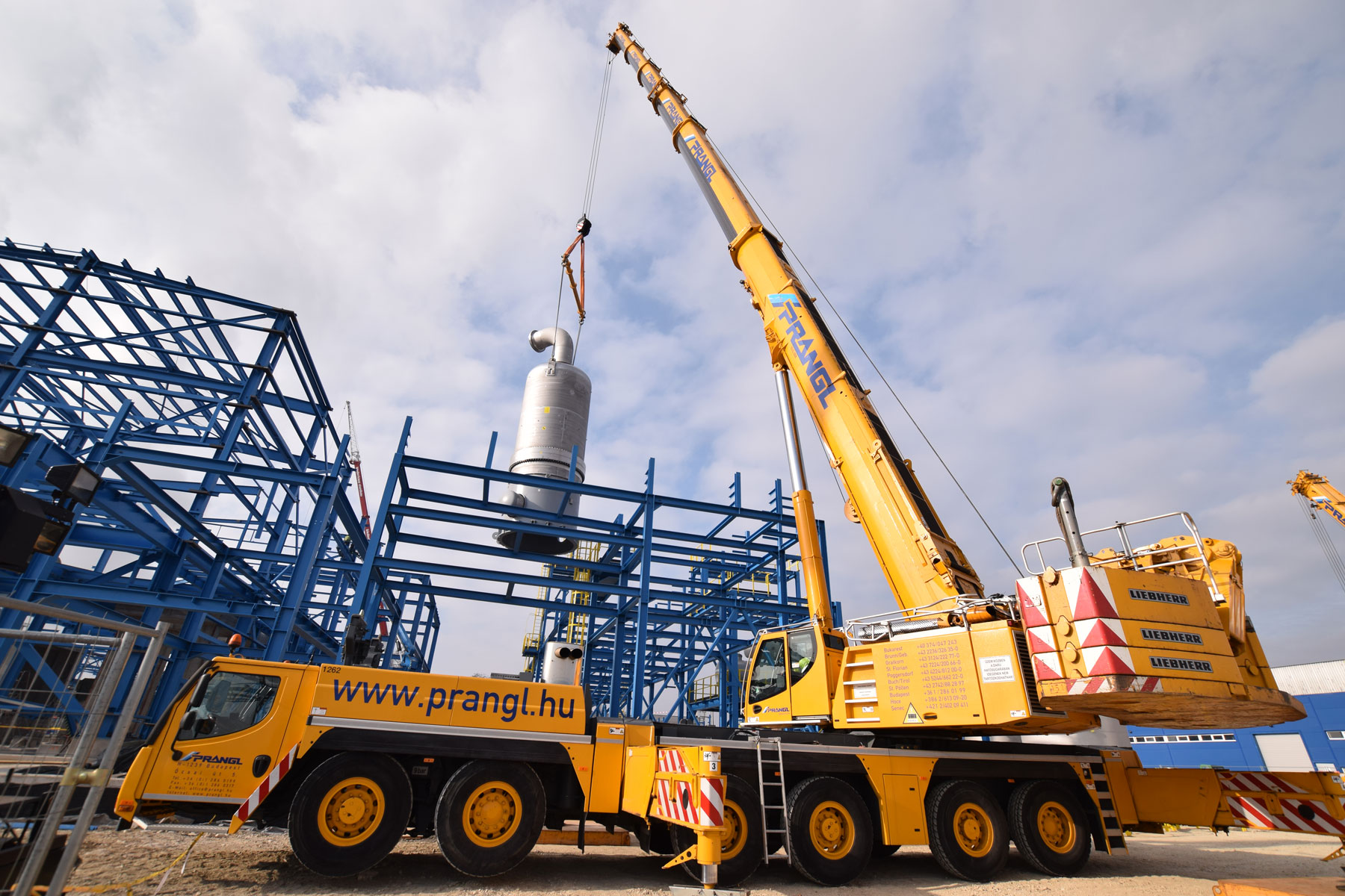 Für einen ungarischen Düngemittelhersteller entsteht derzeit gerade eine Anlage zur Granulation von Ammoniumnitrat. Der bestehende Unternehmensstandort in Pétfürdö (Ungarn) wird daher entsprechend erweitert. Das Werk soll ab Herbst 2016 täglich 1 550 Tonnen Ammoniumnitrat sowie 1 960 Tonnen Calcium-Ammoniumnitrat granulieren. Prangl unterstützt bei diesem Großprojekt nahezu exklusiv mit Arbeitsbühnen, Mobilkränen und Teleskopstaplern.