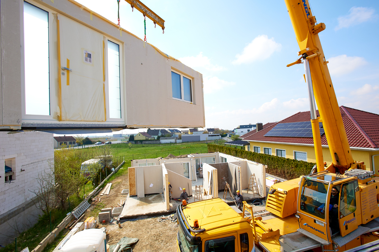Es sind nicht immer nur die großen und komplexen Projekte, die uns mit Freude und Stolz erfüllen. Wenn man seit Jahrzehnten mit einer Branche mitwächst und viele derartige Vorhaben in einem Jahr abwickeln darf, ist das etwas genauso Besonderes. Ein Fertighaus ist eine zeitsparende Alternative zu einem gemauerten Haus. In diesem Fall ging es um die Montage eines besonders großen Eigenheims inklusive Carport.