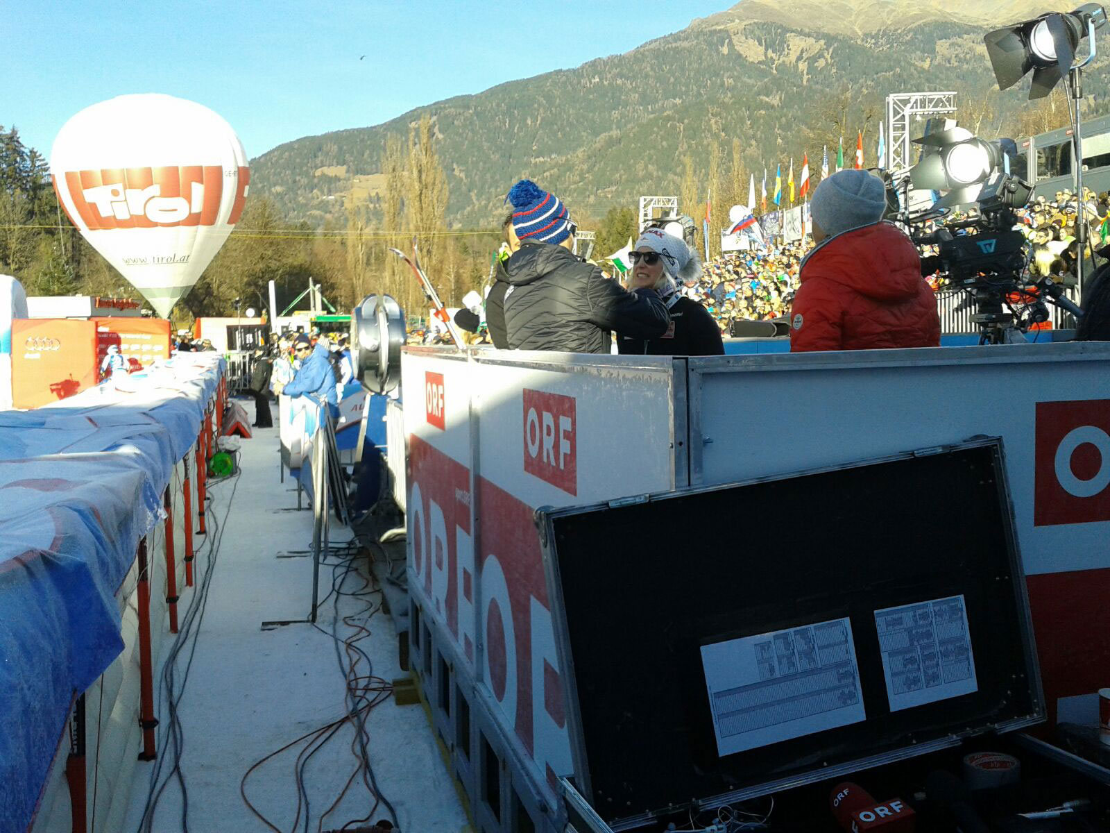 Mit einer 46 Meter LKW-Arbeitsbühne wurde der Zielhang für Millionen von TV-Zusehern perfekt in Szene gesetzt. Aufgrund der großen Plattform war diese Arbeitsbühne besonders gut geeignet, das gesamte ORF-Equipment stabil in luftiger Höhe unterzubringen. Durch den Gelenkarm beim Arbeitskorb war es zudem möglich verschiedene Höhen und Positionen zu erreichen. Diese Flexibilität war ein enormer Vorteil für die diversen Kameraeinstellungen. Zusätzlich bietet Prangl eine spezielle Halterung als auch Extra-Anschlüsse für die großen TV-Kameras an.