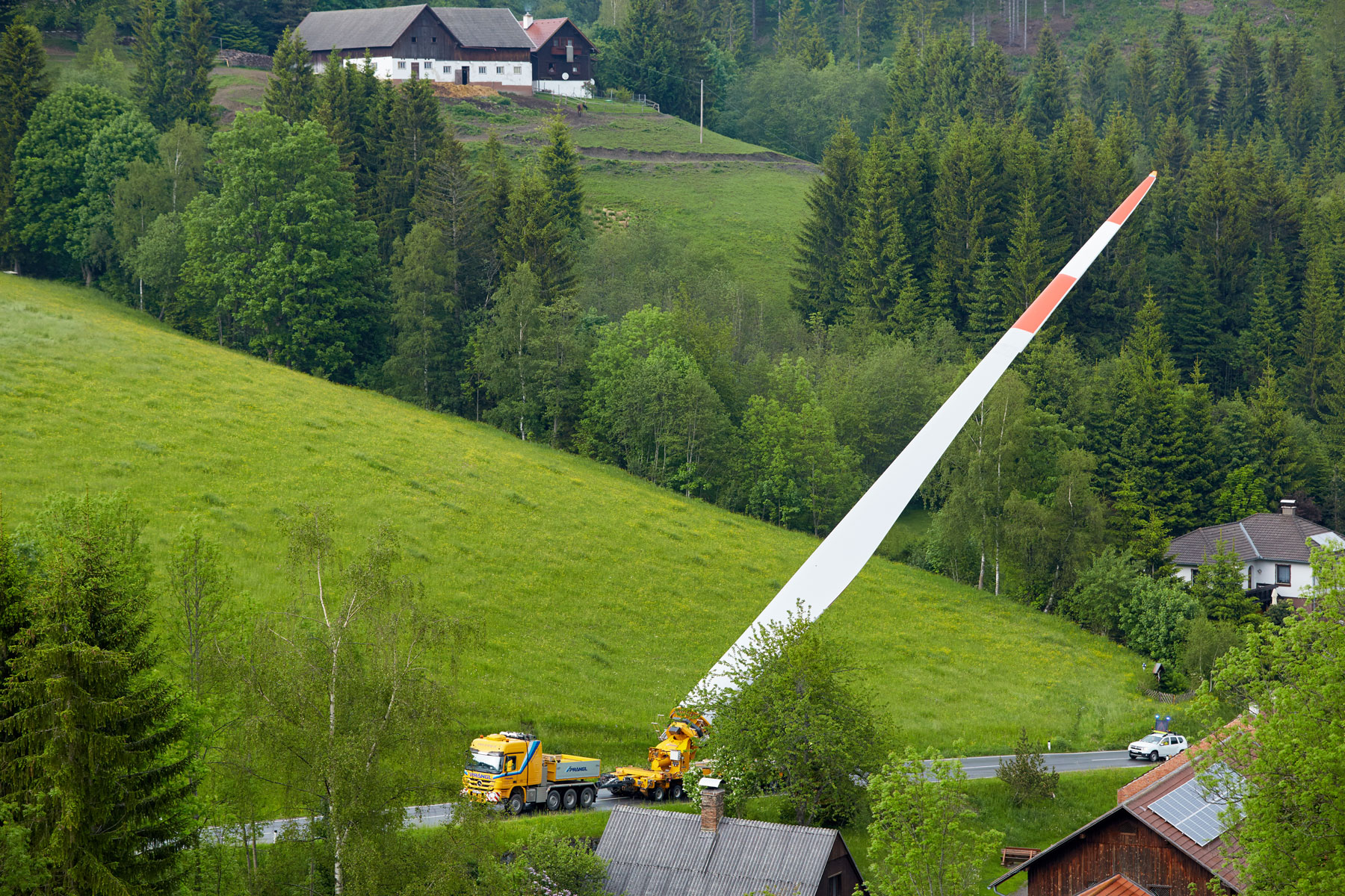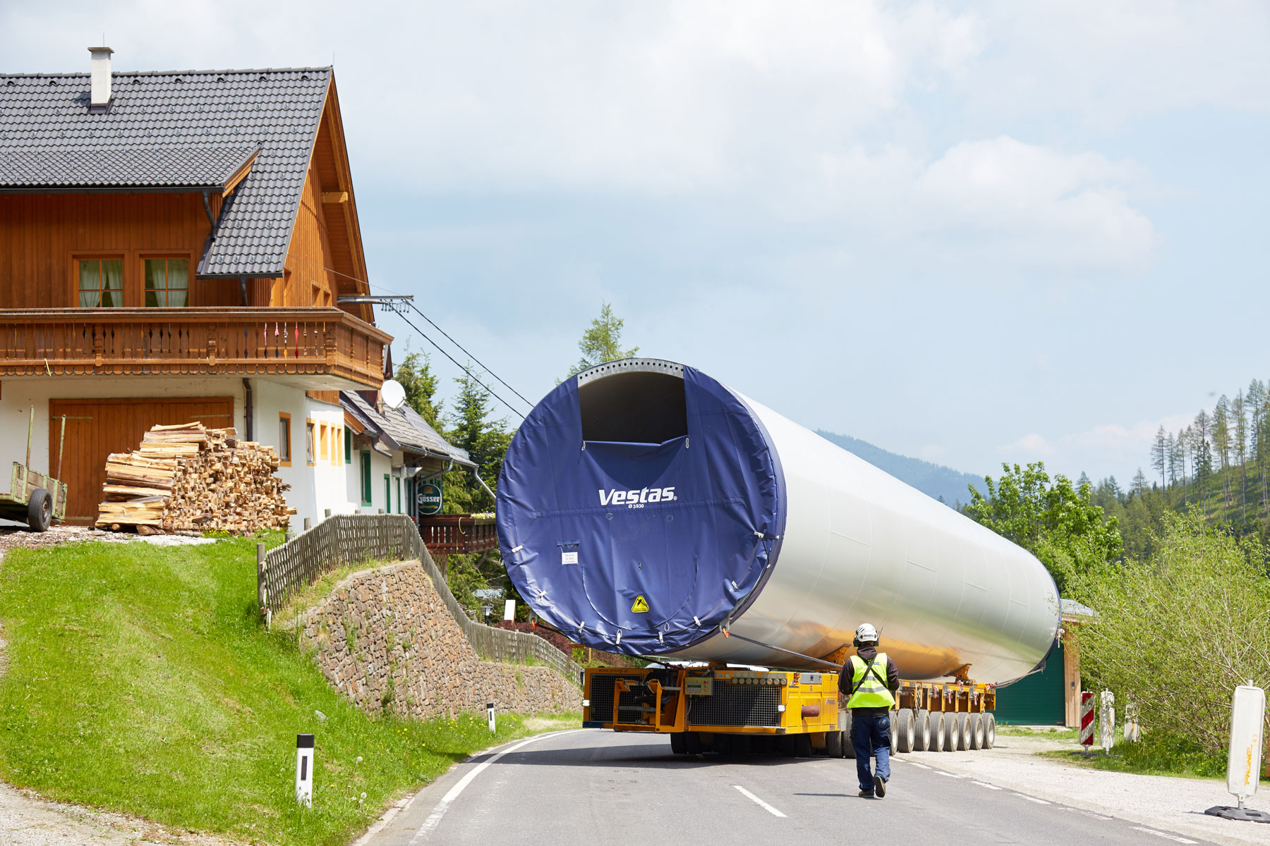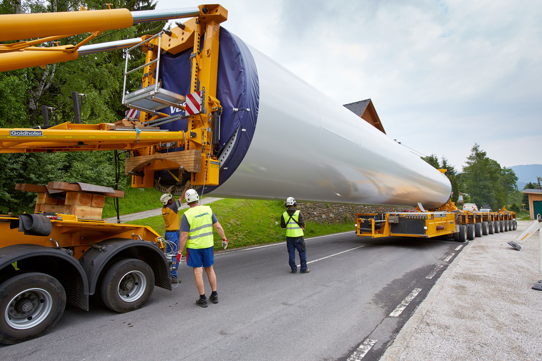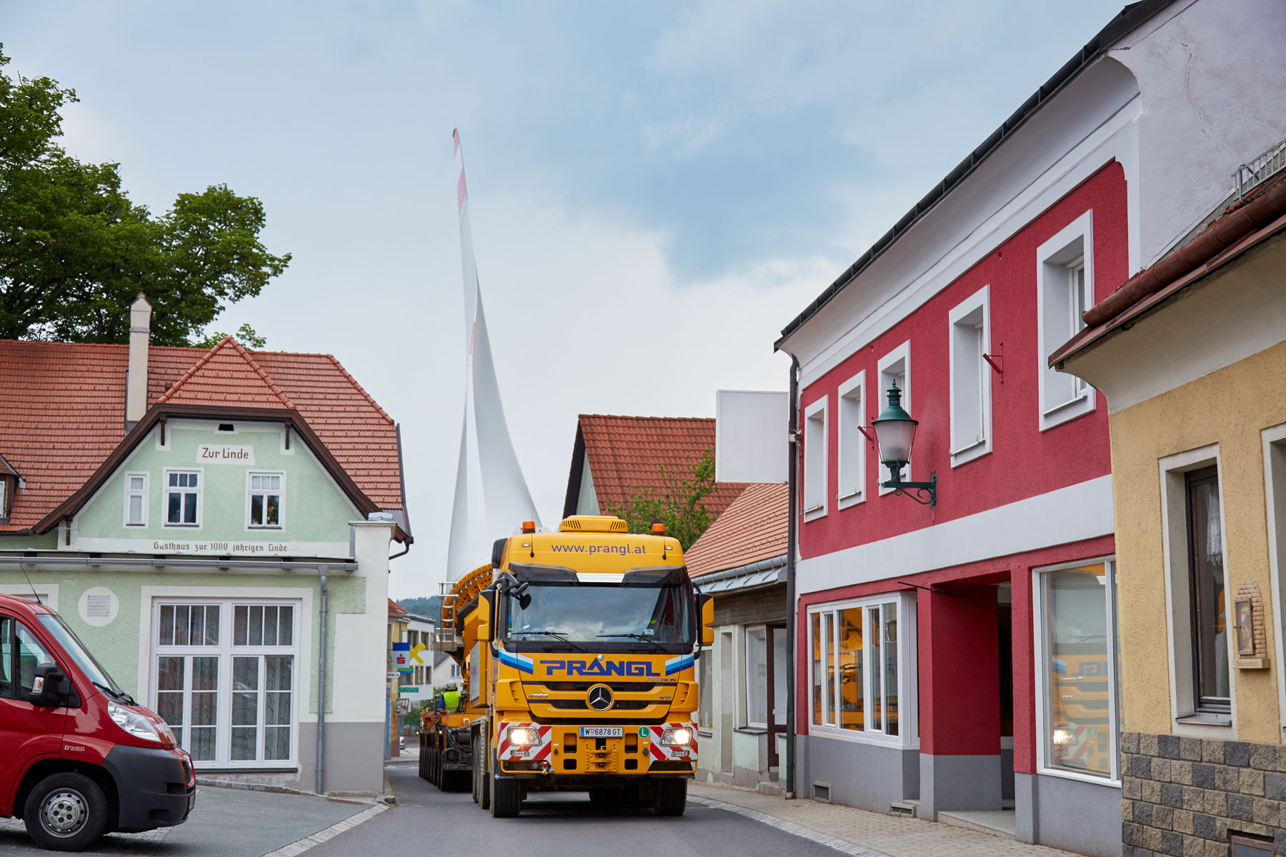 Die Anlagenstandorte liegen im Hochwechsel auf einer Seehöhe von ca. 1 400 Meter. Die sechs Windräder mit 94 Meter Nabenhöhe und einem Rotordurchmesser von 112 Meter sind die aktuell größten Windkraftanlagen, die in Österreich alpin errichtet wurden. Im Sinne eines reibungslosen Ablaufs wurde Prangl exklusiv mit allen Logistikaufgaben beauftragt: Anlieferung aller Komponenten, Zwischenlagerung, Bergtransport und Kranmontage.