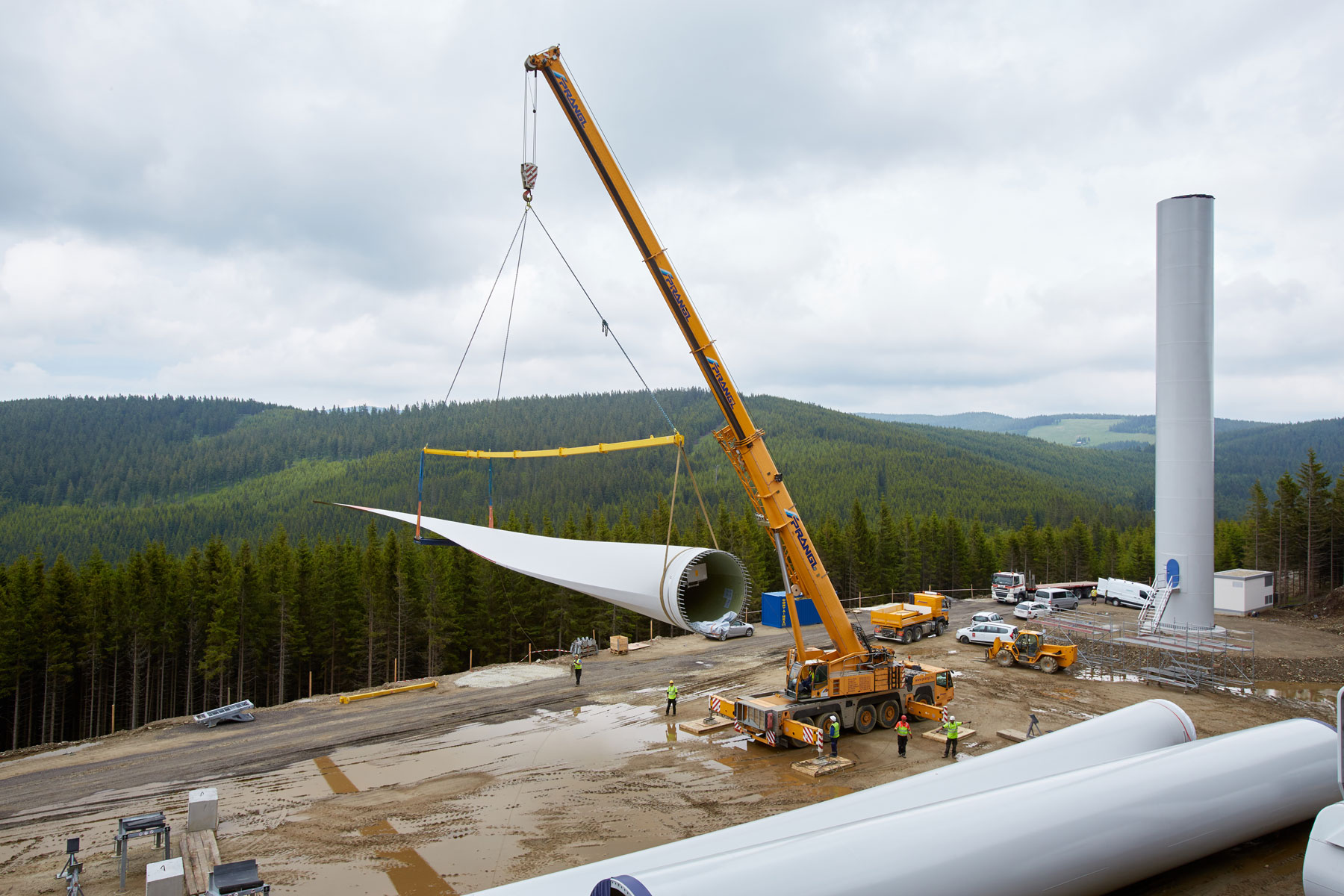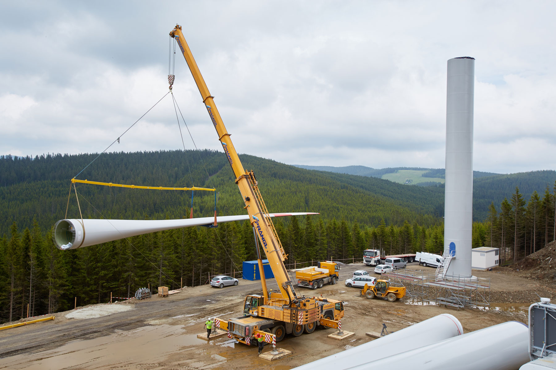 Die Vormontage der Windkraftanlagen erfolgte dann mit einem 500 Tonnen Teleskopkran und die Hauptmontage mit einem 600 Tonnen Gittermastkran. Die perfekte Zusammenarbeit des mehrköpfigen Teams führte auch bei so einem hochkomplexen Vorhaben zu einer optimalen Abwicklung. Und so konnte dank der sehr guten Vorplanung und der perfekten Zusammenarbeit aller Beteiligten der Windpark eine Woche vor Plan fertiggestellt werden – obwohl wegen des späten Schneefalls erst 14 Tage später begonnen werden konnte.