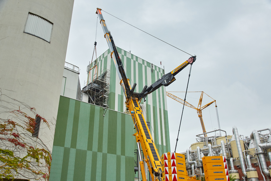 Die besonderen Bedingungen vor Ort stellten das Prangl-Team vor spannende Herausforderungen. Eng begrenzte Flächen, hohe Gebäude und zahlreiche Türme erforderten eine punktgenaue Planung. Nach mehreren Vor-Ort-Besichtigungen und präziser Vermessung entstand ein überzeugendes Konzept, das eine reibungslose Durchführung und die Einhaltung der geplanten Stillstandszeit des Werks sicherte.