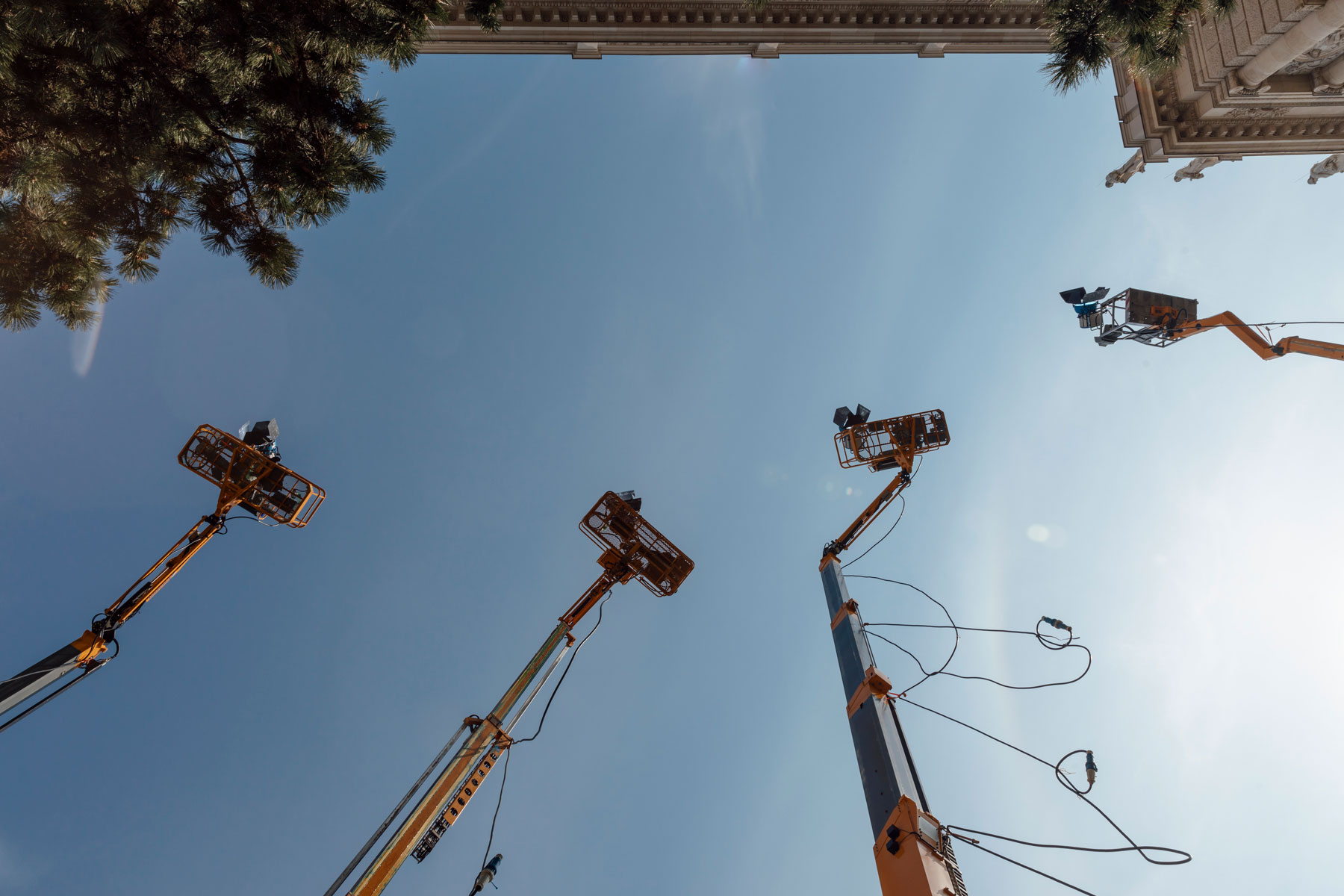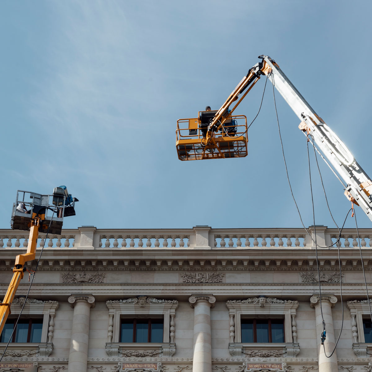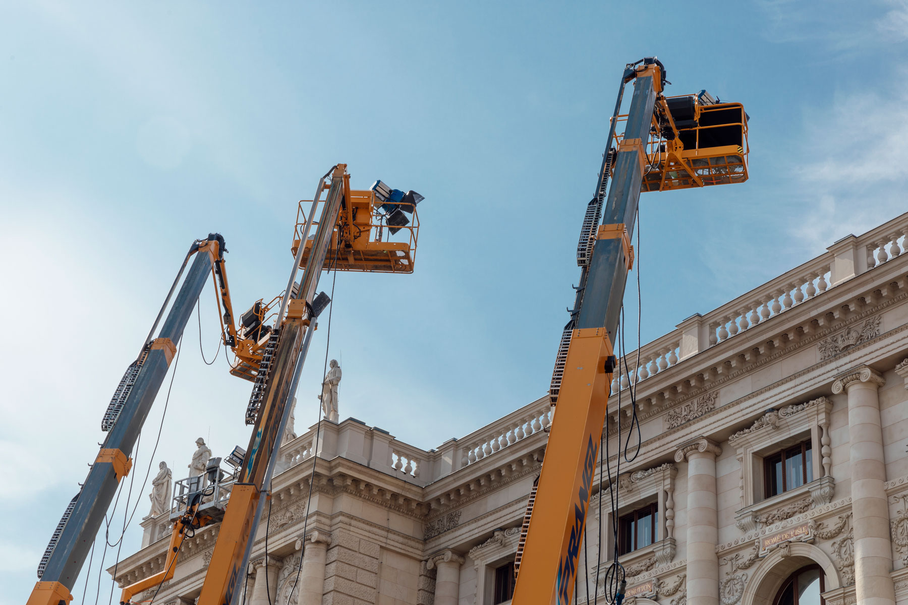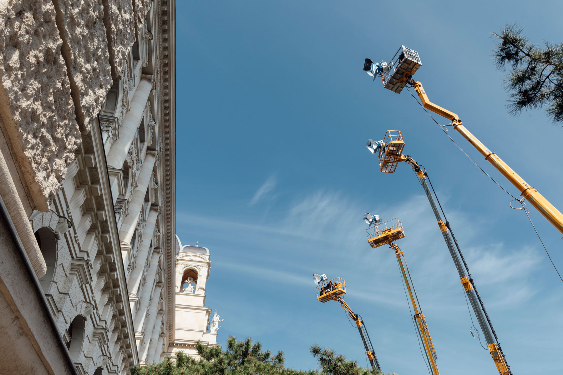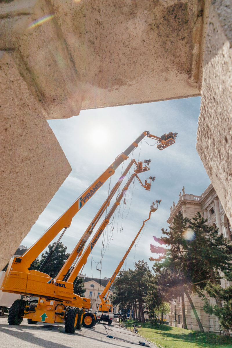 Über die Jahre hat sich Prangl die Expertise erarbeitet, welche Maschinen für welche Art der Dreharbeiten am besten geeignet sind. Für die zweite Episode von “Liebermann“ waren an sechs Drehorten 11 unterschiedliche Arbeitsbühnentypen im Einsatz. Alleine für den Einsatz vor dem Naturhistorischen Museum wurden 5 Geräte bereitgestellt: 3 Stück Teleskop-Arbeitsbühnen mit 34 Meter Arbeitshöhe, eine LKW-Arbeitsbühne mit 28 Meter und eine mit 33 Meter Arbeitshöhe. Die fachmännische Unterstützung des gesamten Prangl-Teams hat wieder einmal bestens geklappt, sodass alle Drehtage zur vollsten Zufriedenheit abgewickelt werden konnten.