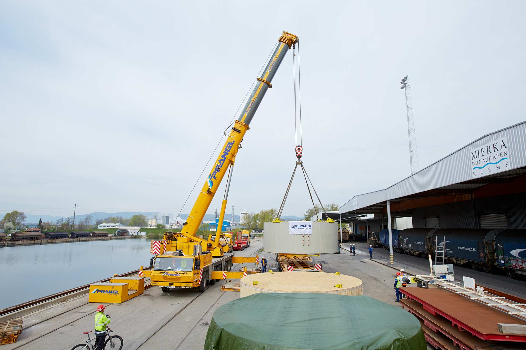 Die Herausforderung von Sondertransporten mit einer Bauteilbreite von 6,80 Meter, einem Stückgewicht von knapp 86 Tonnen, dem Manövrieren durch enges Stadtgebiet und einer fachmännischen Kranentladung “just in time“ ist die perfekte Aufgabenstellung für das Prangl-Team. Auf Basis der langjährigen und sehr guten Zusammenarbeit mit dem Donauhafen Krems wurde Prangl mit den Sondertransporten beauftragt.