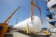 Angesichts der äußerst engen Platzverhältnisse war diese Aufgabe eine besondere Herausforderung. Vor allem beim ersten Behälter, der angehoben und in vertikaler Stellung 60 Meter weit transportiert werden musste, um danach an der finalen Position abgestellt und montiert zu werden. Zum Einsatz kamen ein 280 Tonnen Raupenkran, ein 200 Tonnen und ein 100 Tonnen Teleskopkran sowie Teleskopstapler zur Arbeitsvorbereitung. Aufgrund der Möglichkeit mit Last zu verfahren, war ein Raupenkran dieser Klasse die einzig sinnvolle Lösung.