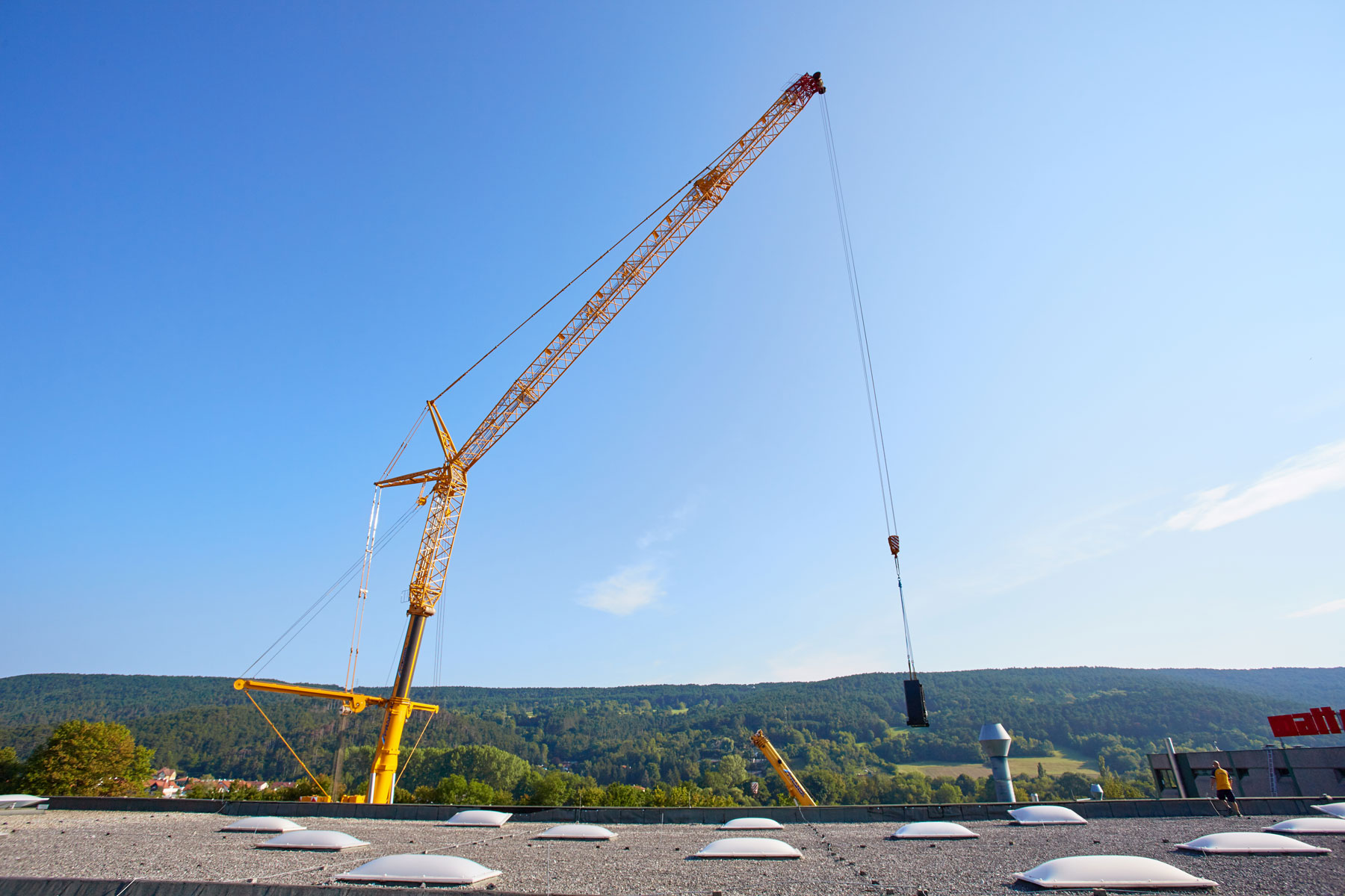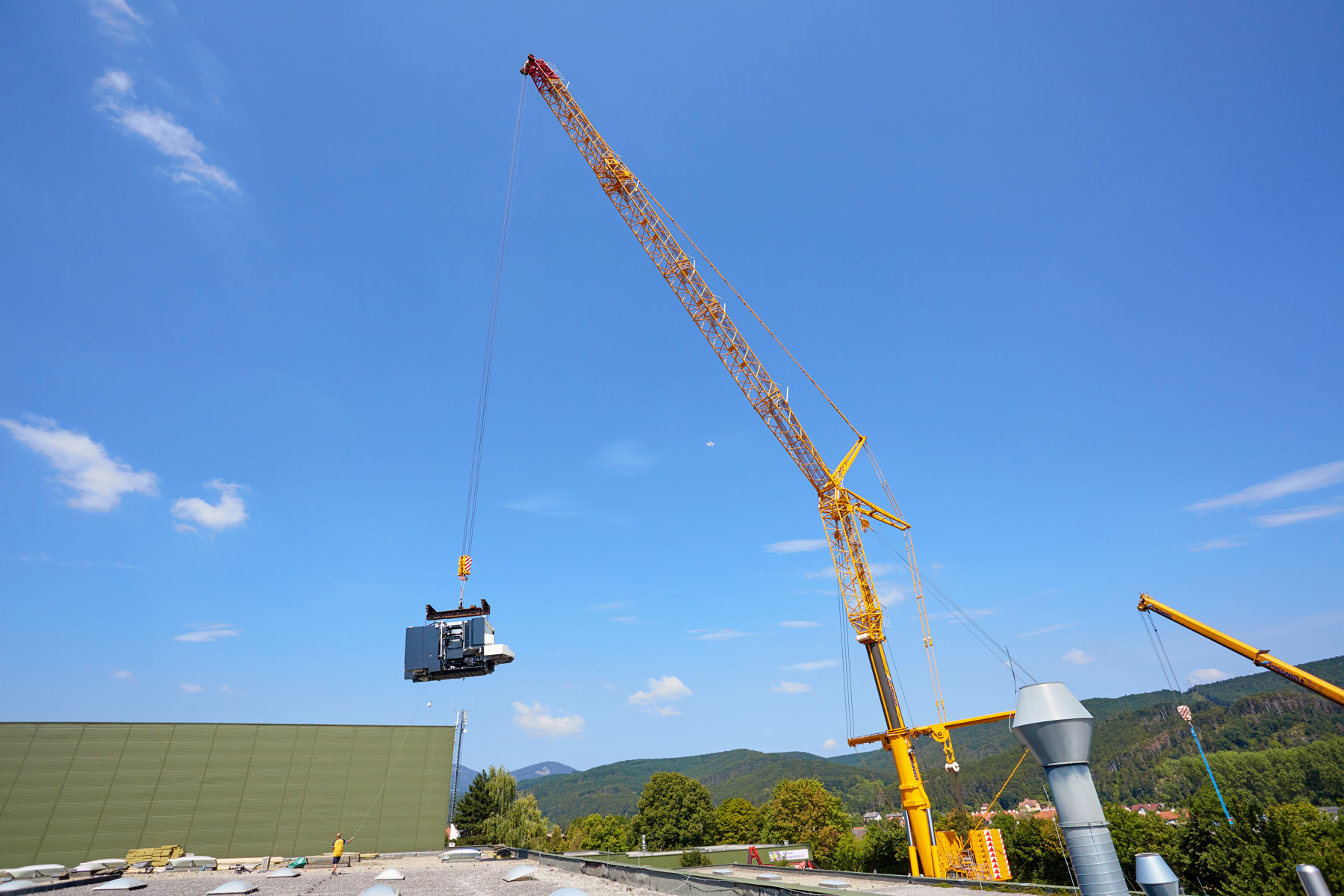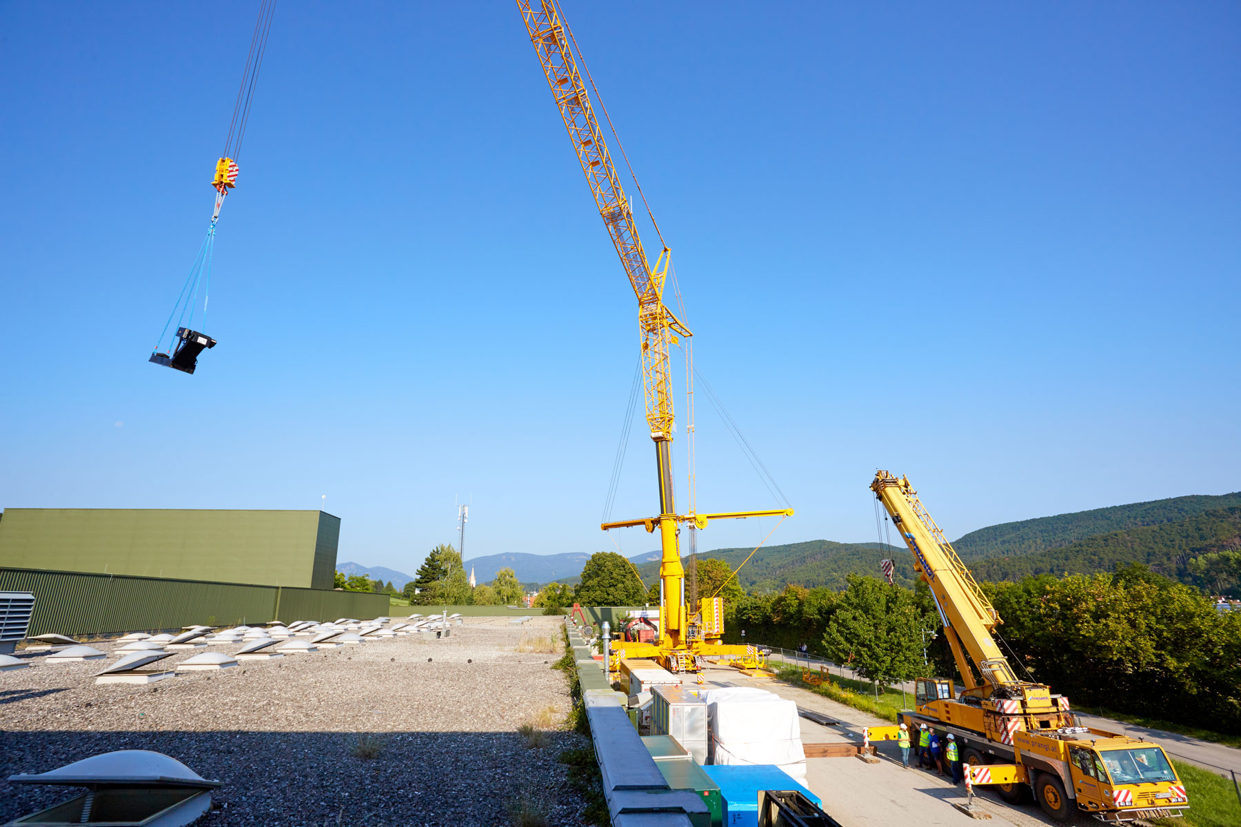 Durch den fixen Anliefer- und Inbetriebnahme-Termin stand gerade einmal ein Zeitfenster von einer Woche zur Verfügung. Es war daher von Beginn weg klar, dass eine rasche Lösung notwendig sein wird. Genau aus diesem Grund war der PTK 1000 die richtige Wahl. Dank seines starken Auslegersystems konnte rasch auf- und abgebaut werden. Jede andere Krantechnologie hätte eine viel höhere Mobilitätszeit beansprucht und wäre daher nicht machbar gewesen.