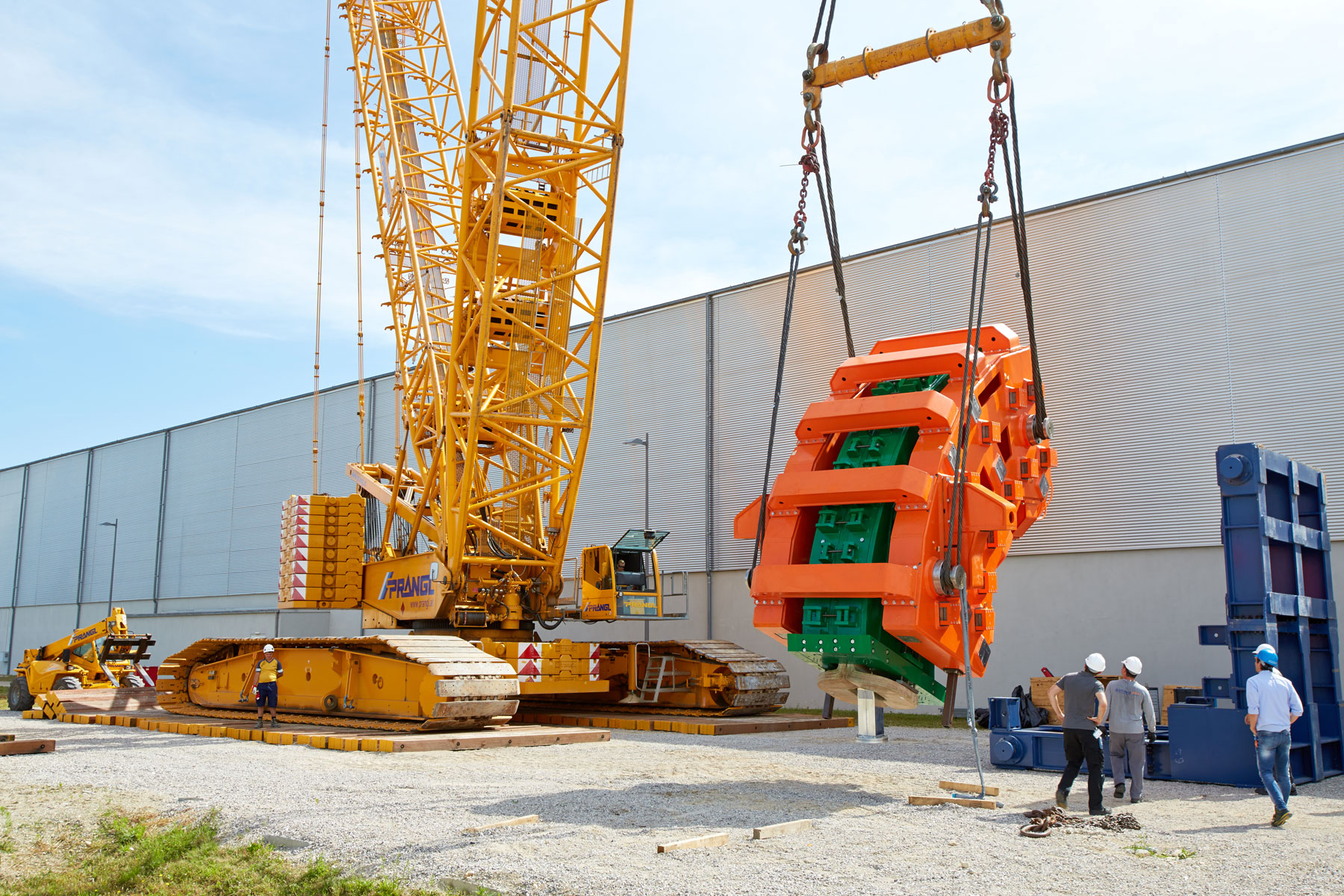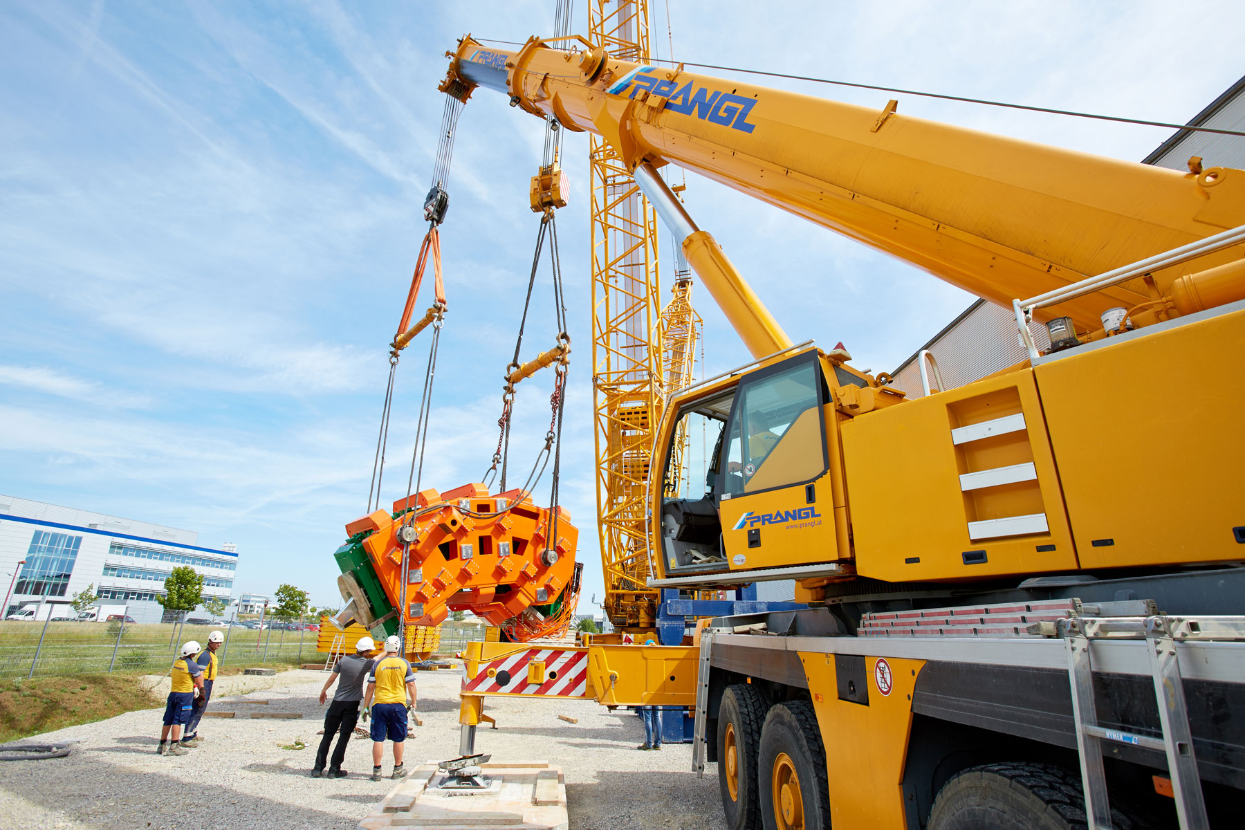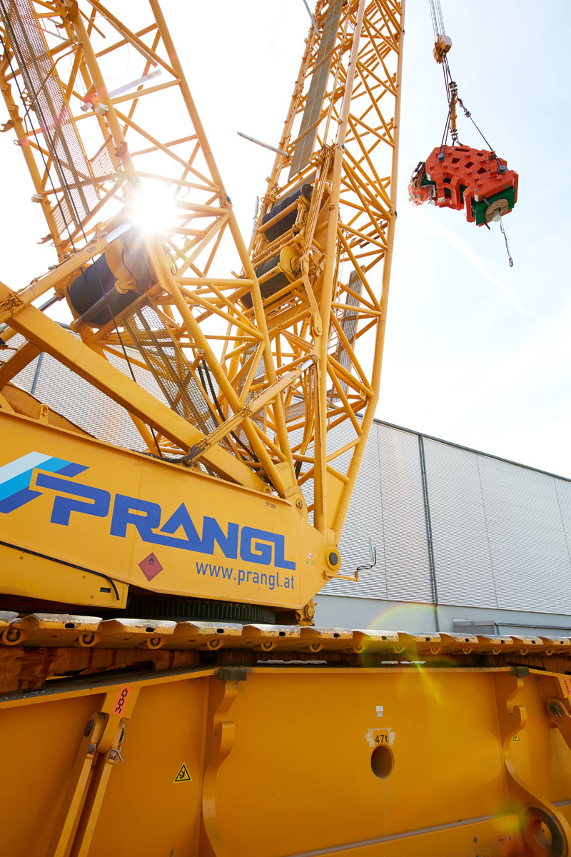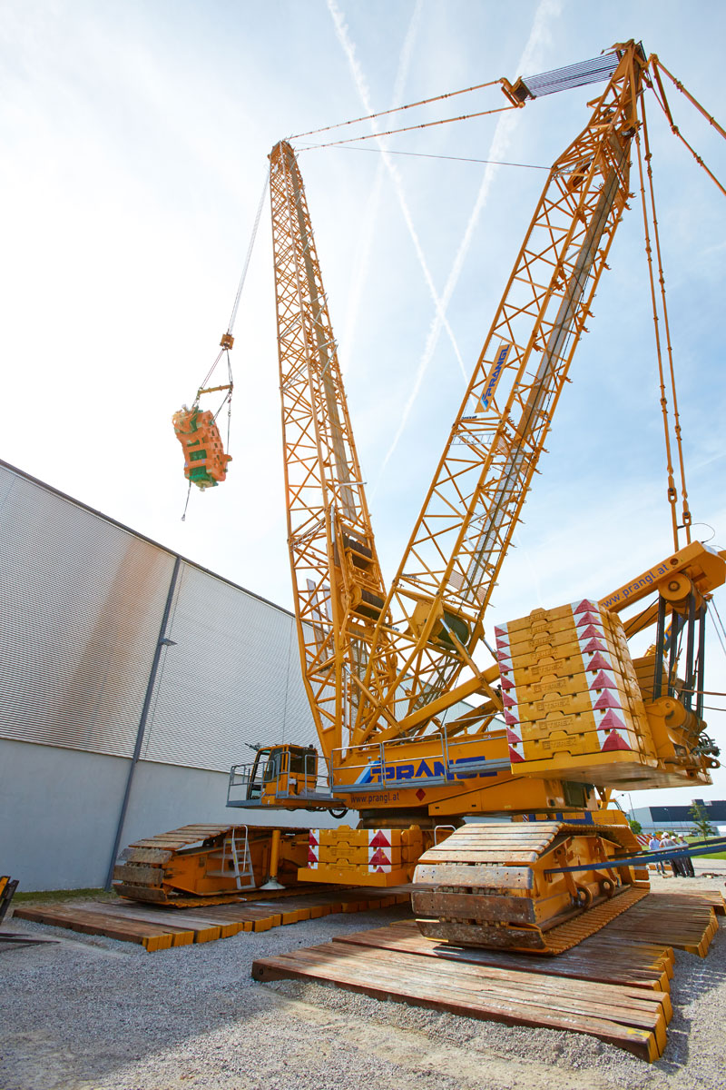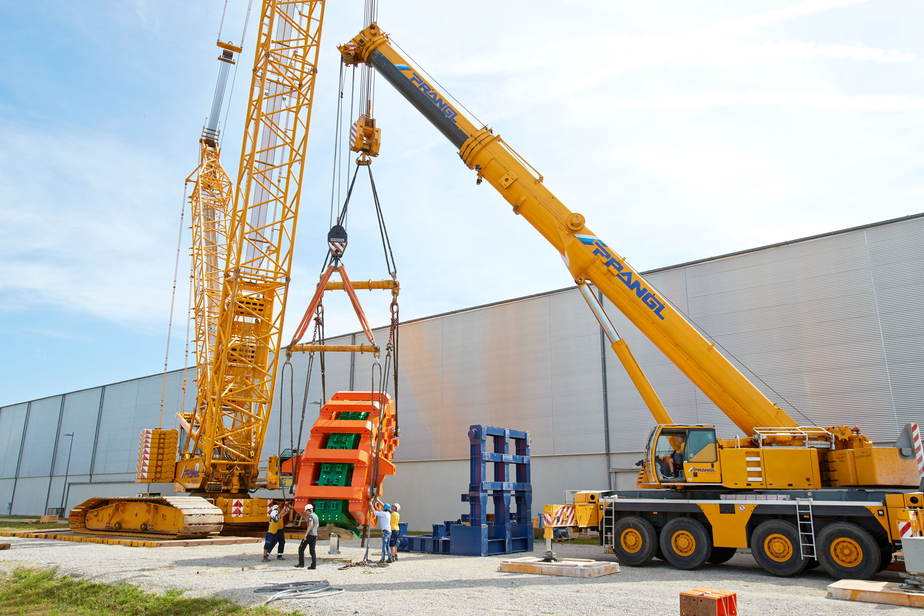 Nach dem endgültigen Zusammenbau wurde der Magnet von beiden Kränen wieder “zurückgedreht“ und schlussendlich mit dem 600 Tonnen Raupenkran durch die im Dach befindliche Einbringungsöffnung eingehoben. Wie bereits beim Ersthub klappte auch diesmal alles reibungslos. Die Vor-Ort-Kenntnisse, die präzise Planung und die gute Umsetzung durch alle Beteiligten machte auch dieses heikle Projekt zu einem vollen Erfolg.