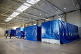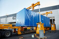 Die 12 Module (je 13,3 Meter lang, je 4,1 bis 5,6 Meter breit, je 3,6 bis 4,0 Meter hoch und je 17 bis 58 Tonnen schwer) wurden mit Hilfe von Schwerlastrollen und Hubportalen aus der Lagerhalle gebracht, um danach auf die Sondertransporteinheiten von Prangl verladen zu werden. Zum Einsatz kamen für diese Vorlauftransporte die für Österreich hinsichtlich der maximal möglichen Abmessung optimalen Kombinationen von 3-Achs und 4-Achs-Zugmaschinen mit unterschiedlichen Trailern (2-Achs-, 3-Achs-, 2+4-Achs-Tiefbettsattel, 3+5-Achs-Kesselbrücke sowie 6- Achs-Satteltieflader).