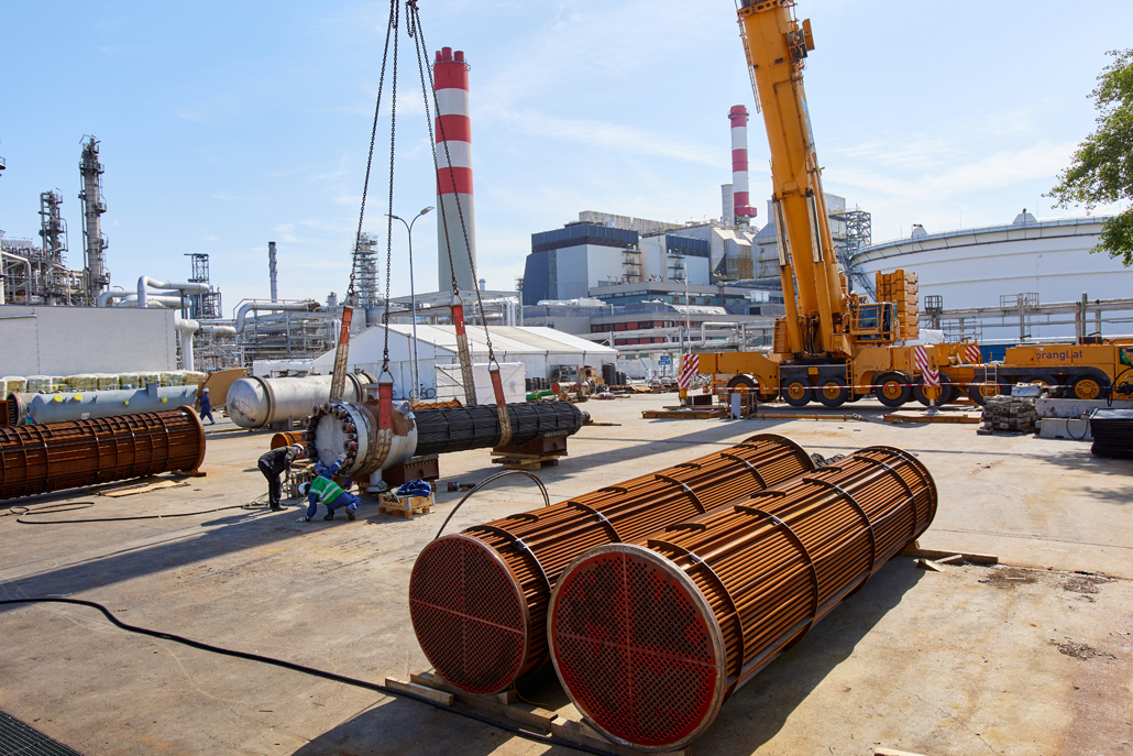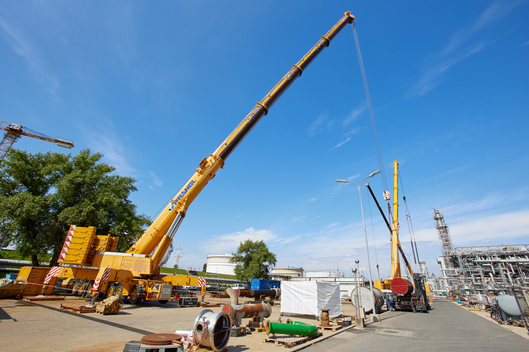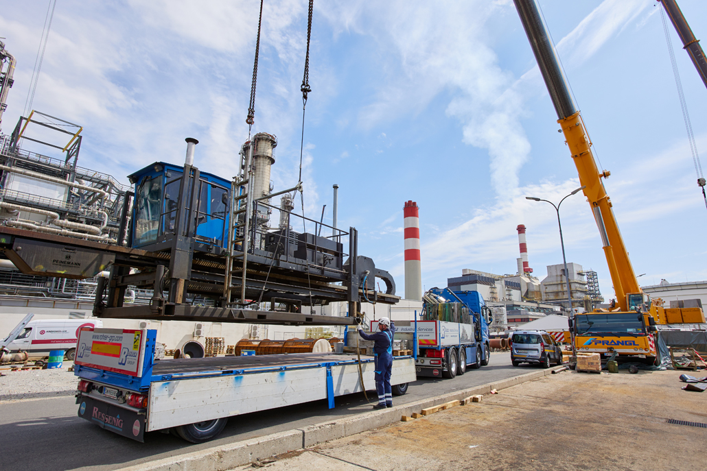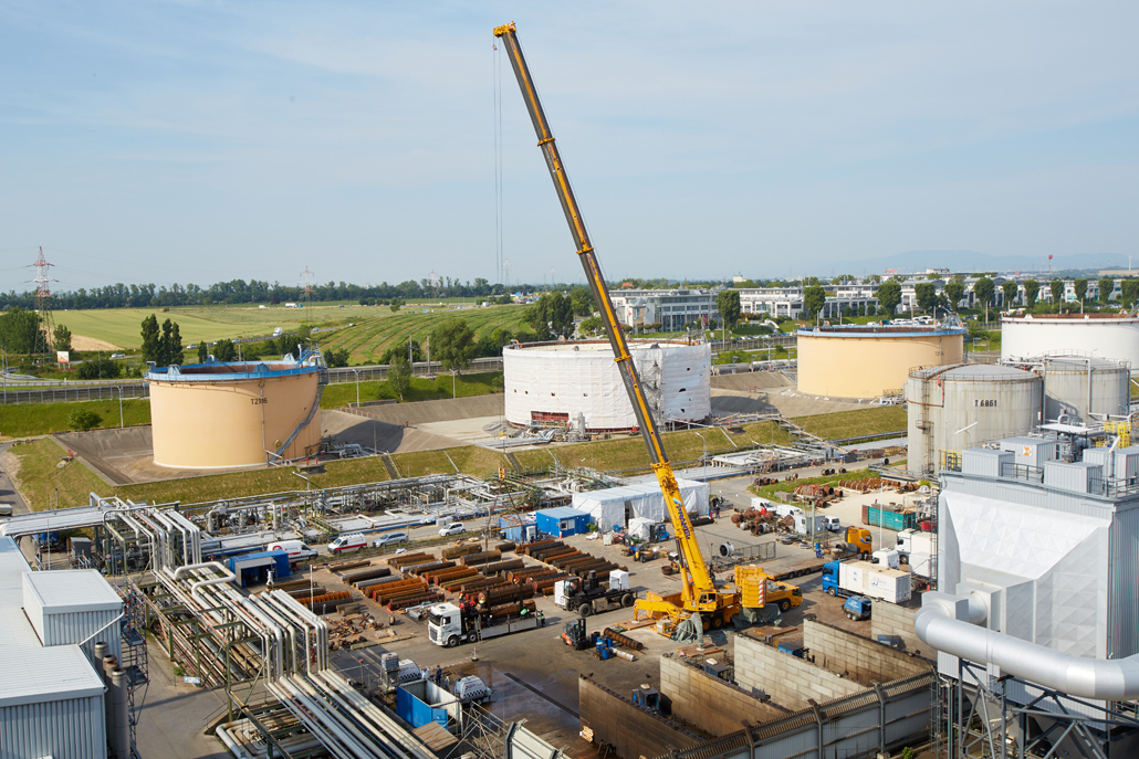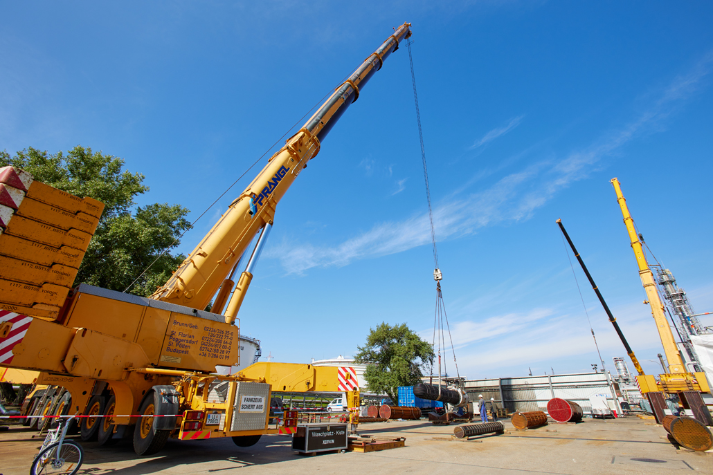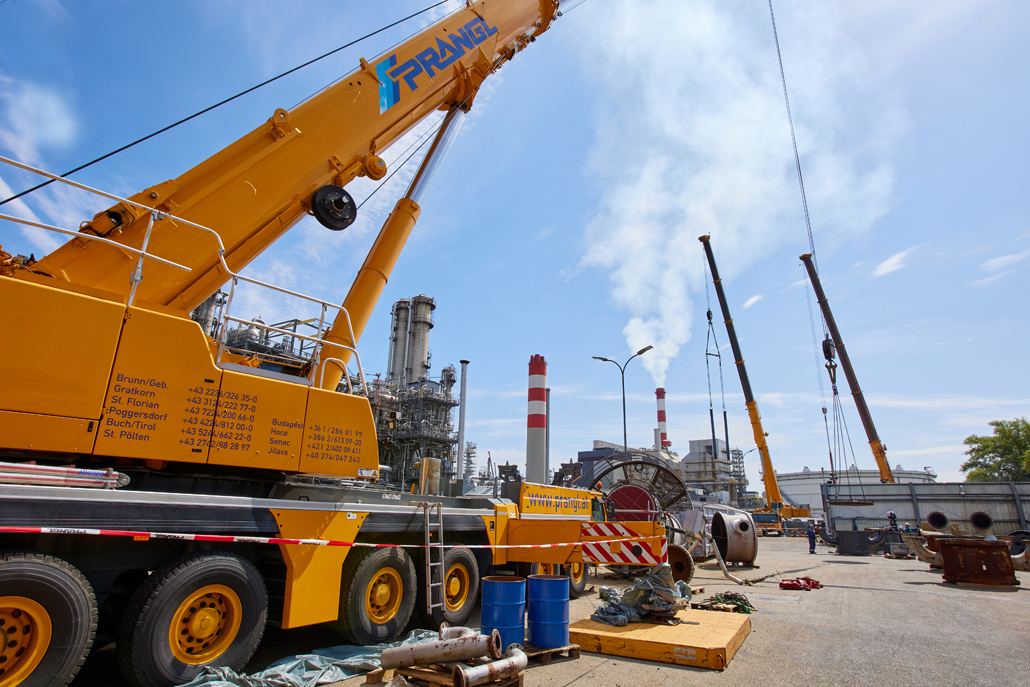 Arbeiten auf dem Areal der OMV Schwechat unterliegen ganz besonderen Sicherheitsrichtlinien. Die Mitarbeiter von Prangl sind immer wieder für verschiedenste Arbeiten vor Ort und sind dadurch bestens geschult. Nun stand wieder eine Revision am Programm. Für das Arbeitsprogramm wurden insgesamt sieben Wochen eingeplant. Für Transporte innerhalb des Geländes und für Hübe zwischen Reinigungsboxen wurde Prangl verpflichtet – wegen seiner Verlässlichkeit und umfassenden Erfahrung im Bereich Petrochemie.