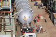 Am zweiten Einsatztag wurde noch eine 20 Tonnen schwere Stahlkonstruktion, die den Reaktor umschließt, eingehoben. Hier ging es abermals um präzises Arbeiten, weil die Fachwerkskonstruktion genau um den Reaktor “eingefädelt“ werden musste. Neben den bereits beschriebenen Besonderheiten waren es vor allem die engen Platzverhältnisse und der enorme Zeitdruck, die alle Mitwirkenden bis zur letzten Minute forderten. Zum Aufbau des Großkrans waren gerade einmal fünf Tage Zeit. Wenn man bedenkt, dass das gesamte System aus 40 LKW-Ladungen bestand, eine sehr ehrgeizige Vorgabe. Für die Hebevorgänge selbst waren dann nur zwei Tage Zeit.
