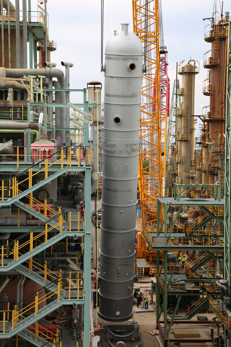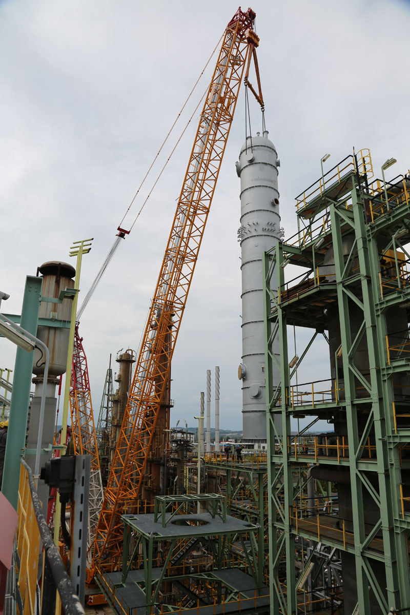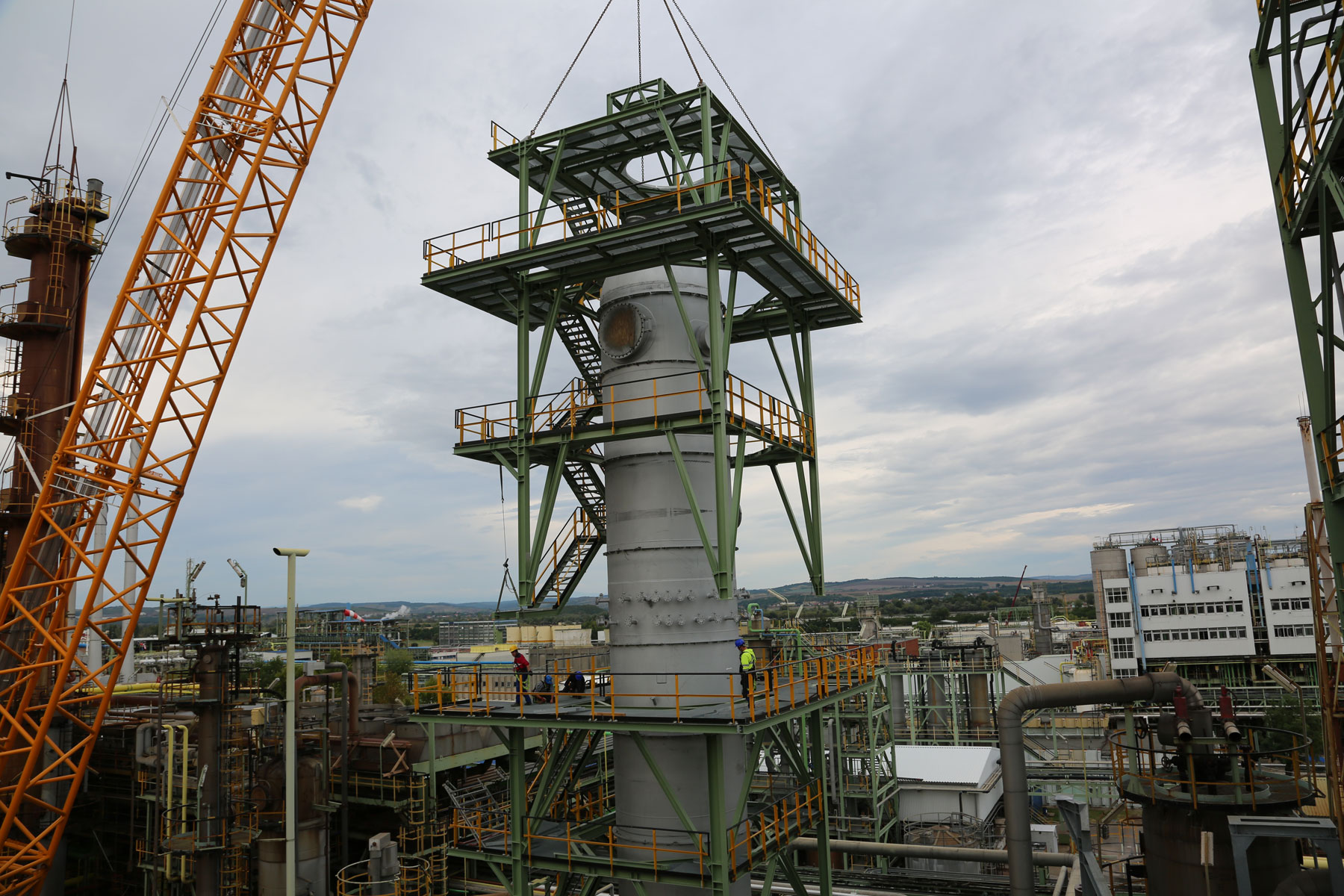 Der Reaktor (Durchmesser 4,8 Meter) wurde in Süd-West-Ungarn gefertigt und per LKW nach Kazincbarcika gebracht. Im dortigen Chemiewerk wurde er von einem 650 Tonnen Raupenkran und einem 250 Tonnen Teleskopkran in Empfang genommen. In einem Tandemhub wurde der Reaktor aufgedreht, um dann vom Großkran in seine finale Position gehoben zu werden. Um dies sicher gewährleisten zu können, wurde der Raupenkran mit einem 72 Meter hohen Ausleger und 460 Tonnen Gegengewicht ausgestattet. In Summe brachte der Koloss 721,6 Tonnen auf die Waage.