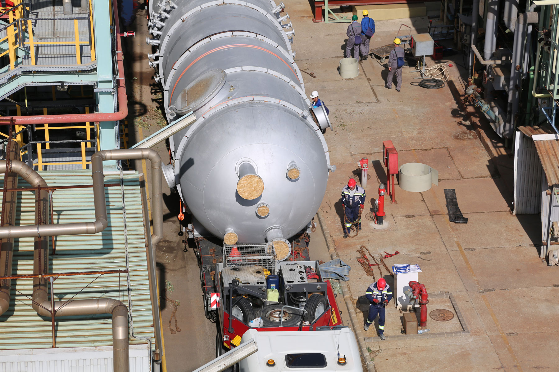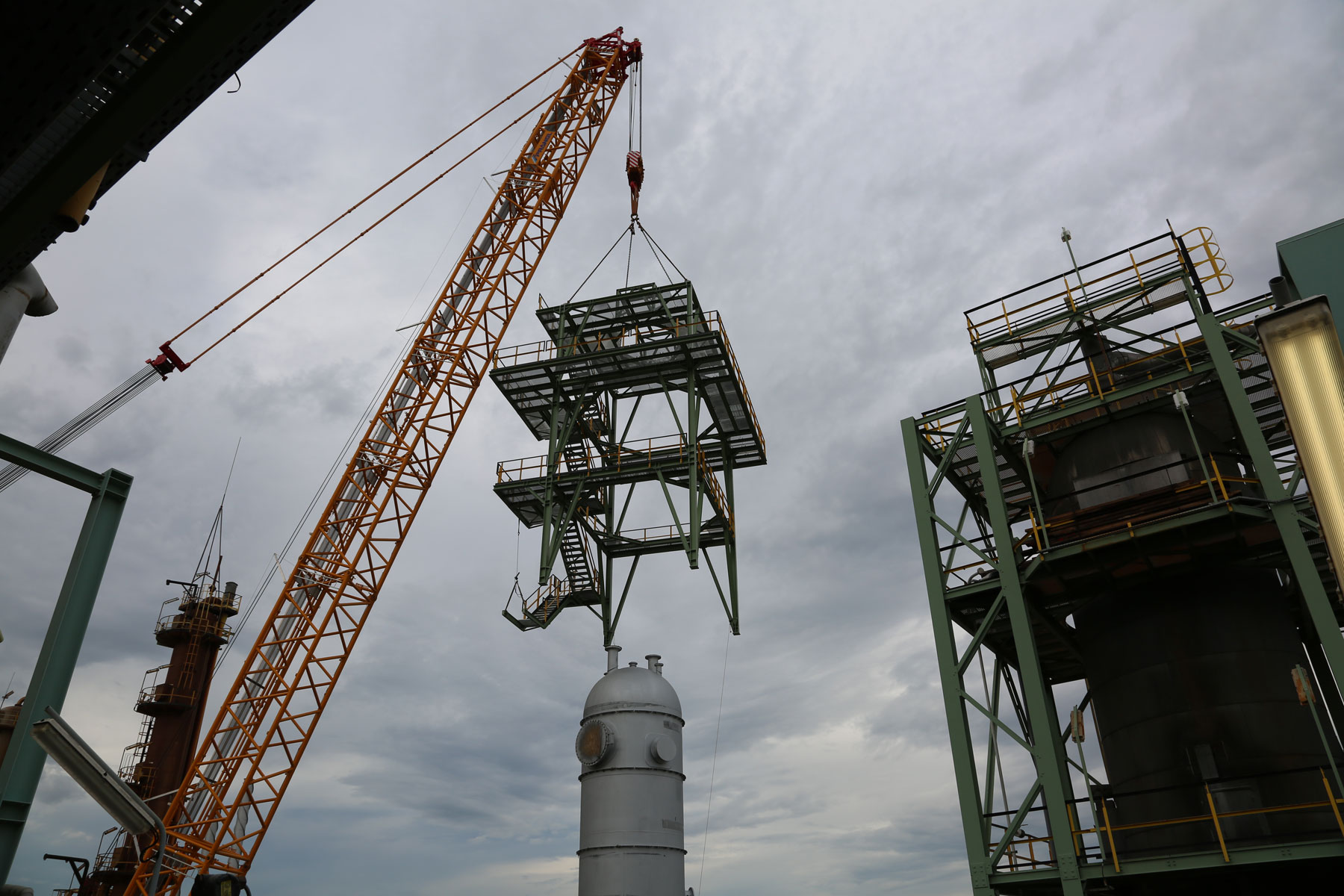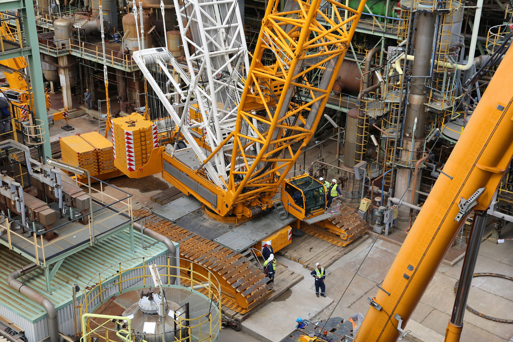 Der Reaktor (Durchmesser 4,8 Meter) wurde in Süd-West-Ungarn gefertigt und per LKW nach Kazincbarcika gebracht. Im dortigen Chemiewerk wurde er von einem 650 Tonnen Raupenkran und einem 250 Tonnen Teleskopkran in Empfang genommen. In einem Tandemhub wurde der Reaktor aufgedreht, um dann vom Großkran in seine finale Position gehoben zu werden. Um dies sicher gewährleisten zu können, wurde der Raupenkran mit einem 72 Meter hohen Ausleger und 460 Tonnen Gegengewicht ausgestattet. In Summe brachte der Koloss 721,6 Tonnen auf die Waage.