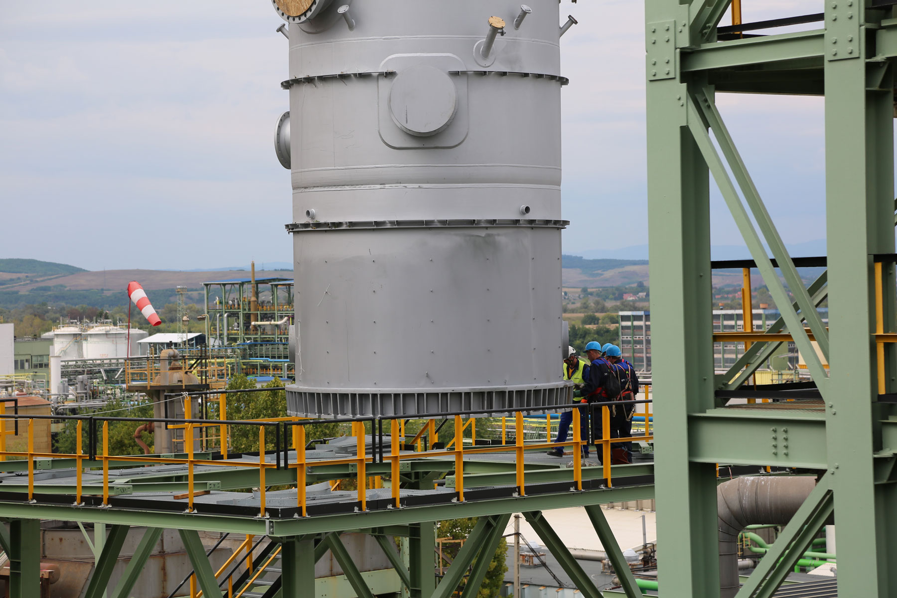 Im ungarischen Kazincbarcika wurde eine neue Anlage zur Herstellung von Chlorwasserstoffsäure (Salzsäure) errichtet. Hauptaufgabe war dabei die Montage eines 32 Meter hohen und 160 Tonnen schweren Reaktors. Genau der richtige Job für das internationale Prangl-Team.