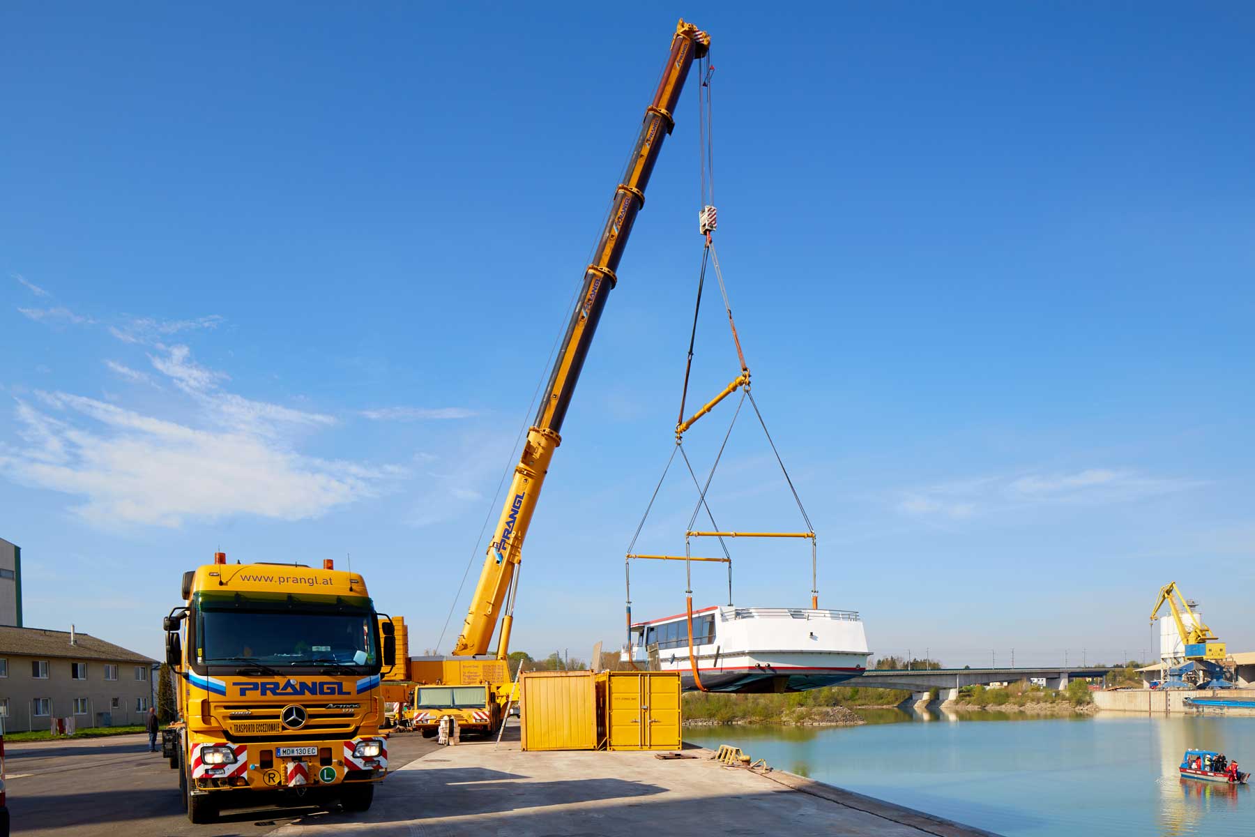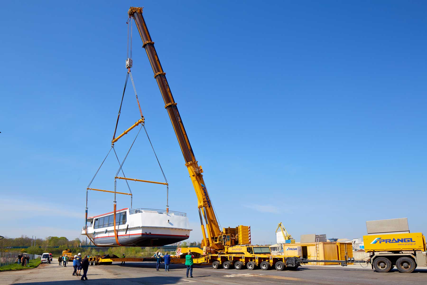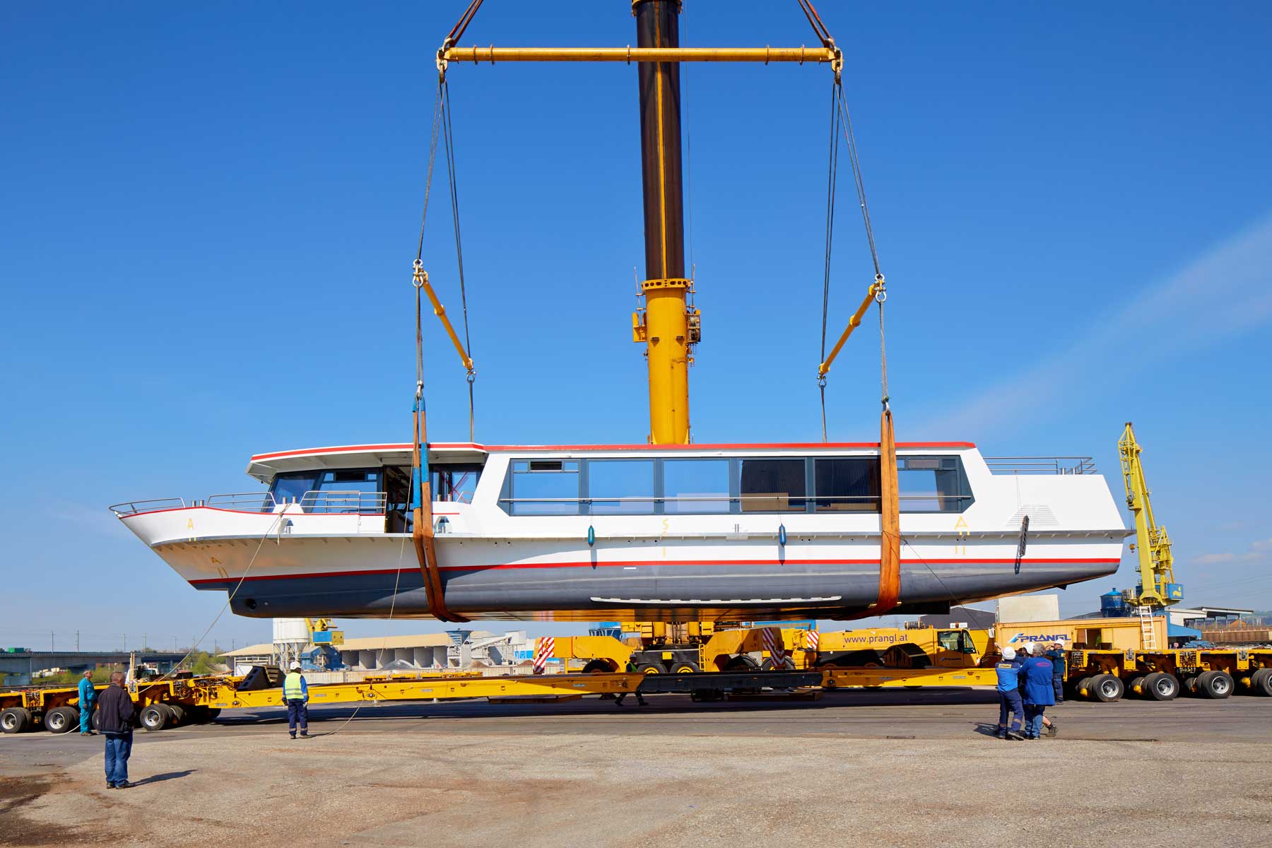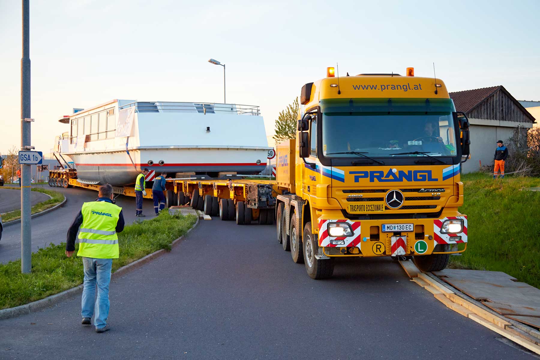 Die traditionsreiche Hallstättersee-Schifffahrt befährt seit 47 Jahren mit ihren Schiffen den traumhaften Hallstättersee. Nun wurde die Flotte um ein weiteres Ausflugsboot erweitert. Nachdem die Überführung einer so großen Fracht eine echte Herausforderung ist, verließ man sich auf die Experten von Prangl. Auch die Abwicklung von Logistik und Transport wurde Prangl übertragen.