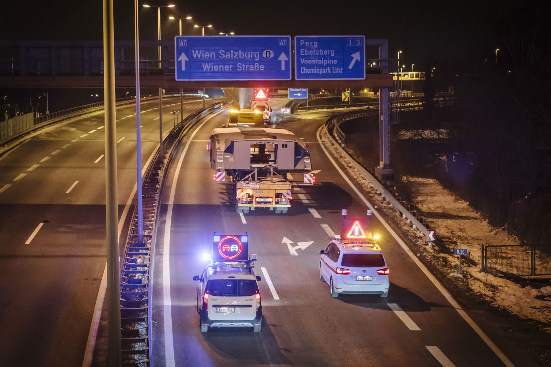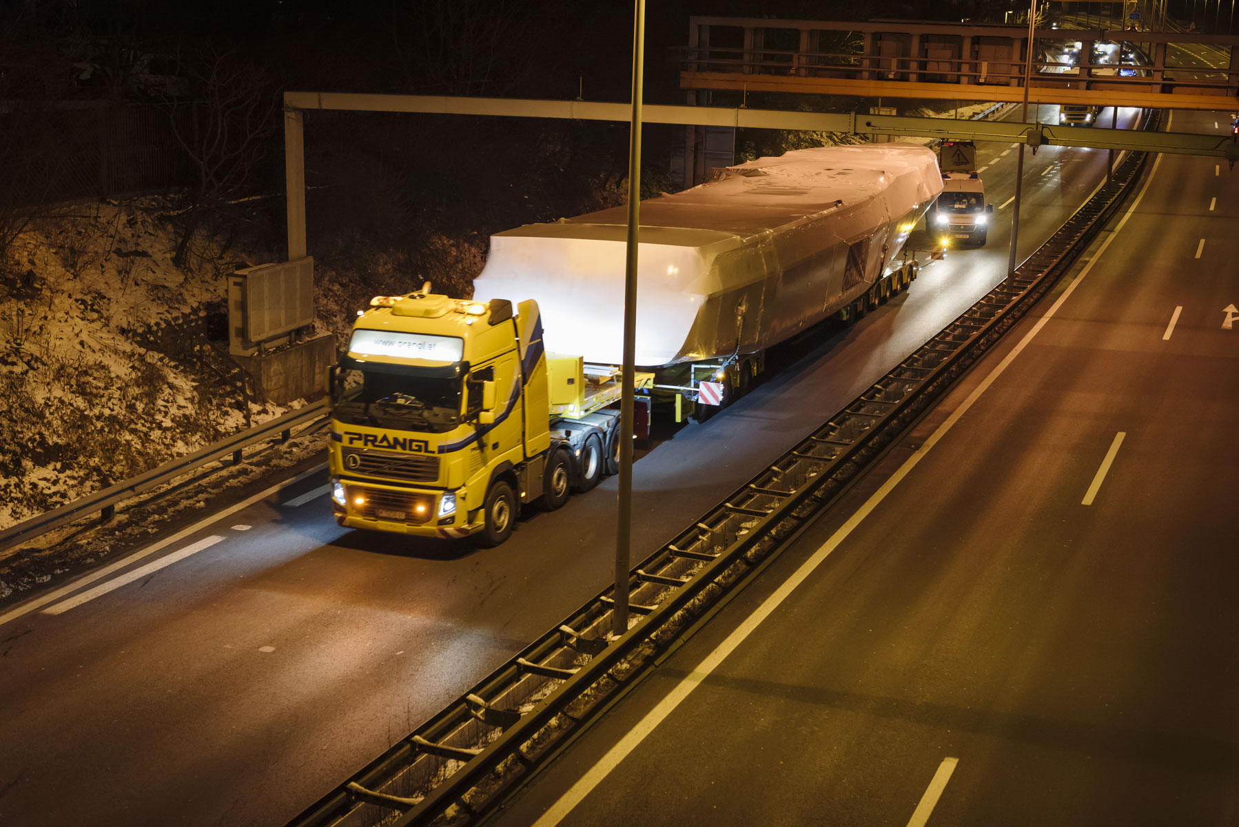 Ein 30 Meter langes Ausflugsschiff, mit dem 60 Personen befördert werden können, sollte von einer Schiffswerft in Linz abgeholt und in die Schweiz transportiert werden. Wegen der Größe und des Gewichtes des Schiffes sowie des hohen logistischen Anspruchs war diese Aufgabe nur von Spezialisten wie jene von Prangl reibungslos zu bewältigen.