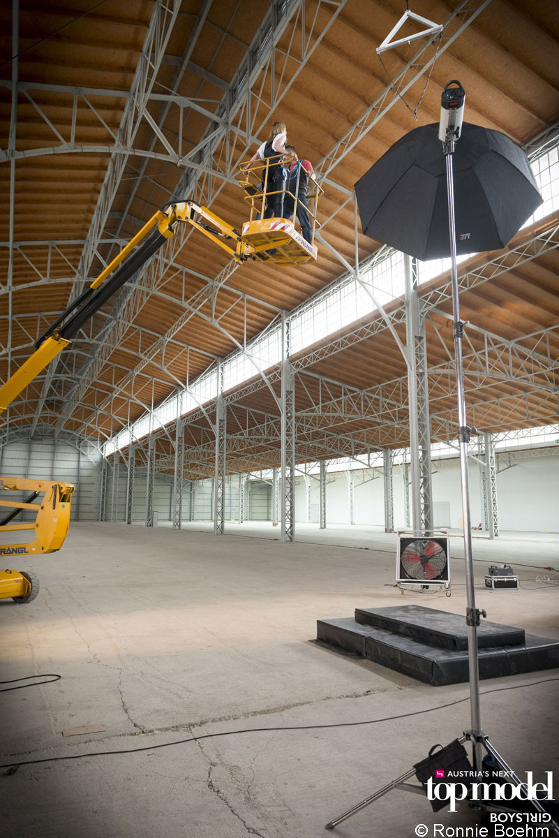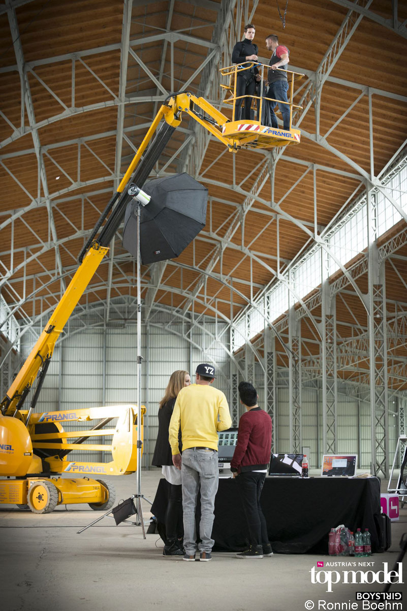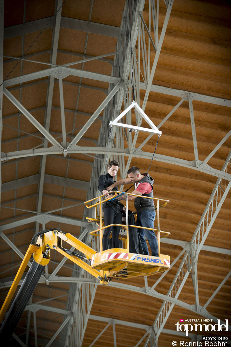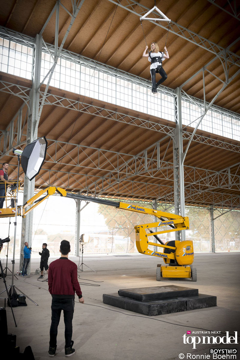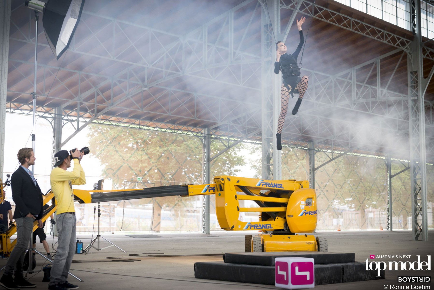 Für Episode 5 von “Austria´s Next Topmodel“ haben sich die Produzenten von Puls 4 wieder etwas ganz Besonderes einfallen lassen: Die angehenden Models mussten an Seilen herabschwebend ihre besten Posen zeigen. In einer tragenden Rolle mit dabei war auch eine 17 Meter Gelenk-Arbeitsbühne mit Elektroantrieb. Mit ihr wurden die “Teilnehmer“ emporgehoben, ehe sie von der Leine gelassen wurden. Aufgrund dieser Funktion war das gelbe Topmodel aus dem Haus Prangl im TV einfach nicht zu übersehen.