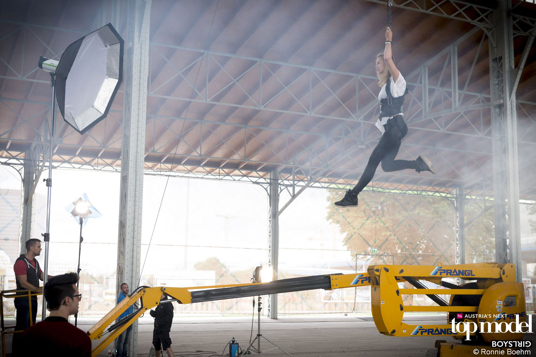 Auch heuer suchen Melanie Scheriau, Michael Urban, Papis Loveday und Bianca Schwarzjirg nach dem schönsten Gesicht Österreichs. Seit Mitte September kämpfen 20 Kandidaten bzw. Kandidatinnen um den Sieg. Bei einer der zahlreichen Herausforderungen stellte Prangl eine Arbeitsbühne bereit und damit die Mädchen und Burschen auf die Probe.