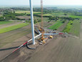 War das Maschinenhaus der schwerste Hub der Windkraftanlage, so war das Positionieren des Rotorsterns der schwierigste. In diesem Windpark wurden die drei Windflügel jeweils an der Nabe vorinstalliert und als eine komplette Einheit verhoben. Jedes der drei Rotorblätter ist 81 Meter lang und wiegt 19 Tonnen, die Nabe allein 40 Tonnen. Somit kam der ganze Stern auf einen Durchmesser von 162 Meter und ein Gewicht von 101 Tonnen. Die Flügelvormontage ging mit Hilfe eines 100 Tonnen und eines 95 Tonnen Hilfskrans vonstatten: Die bereits installierten Rotorblätter wurden von je einem Hilfskran in Waage gehalten, bis alle drei Flügel befestigt waren.