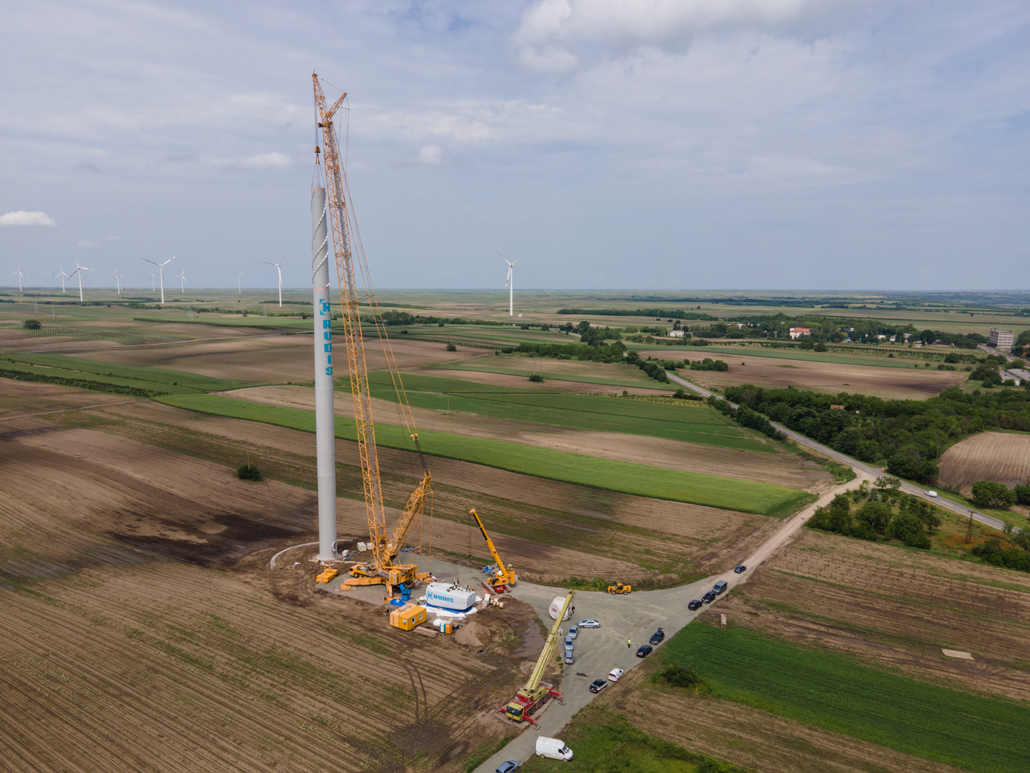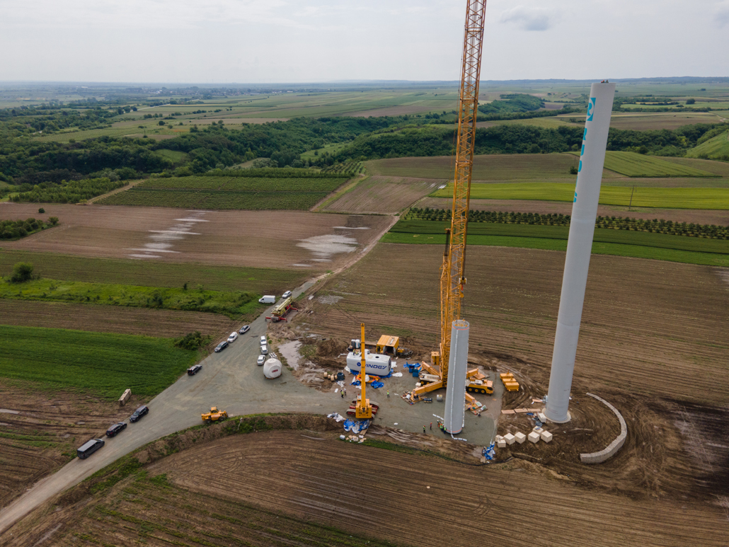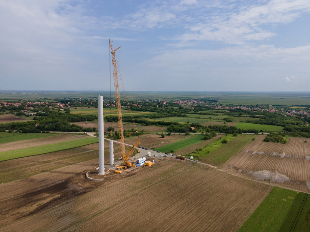 In Serbien steckte die Stromgewinnung aus der Windkraft vor kurzem noch in den Kinderschuhen. Mittlerweile setzt man aber auch dort vermehrt auf diese nachhaltige Energiequelle. Immer mehr Windkraftwerke werden geplant und verwirklicht – wie eben auch der Windpark Alibunar in der Provinz Vojvodina. Prangl Serbien wurde engagiert, um die Windkraftanlagen aufzubauen. Dabei handelt es sich um die ersten Windturbinen in Serbien, die von einem chinesischen Hersteller geliefert wurden. Im Mai und Juni 2023 fand der Aufbau der ersten Windkraftanlagen mit Leistungen von 3,3 Megawatt statt.
