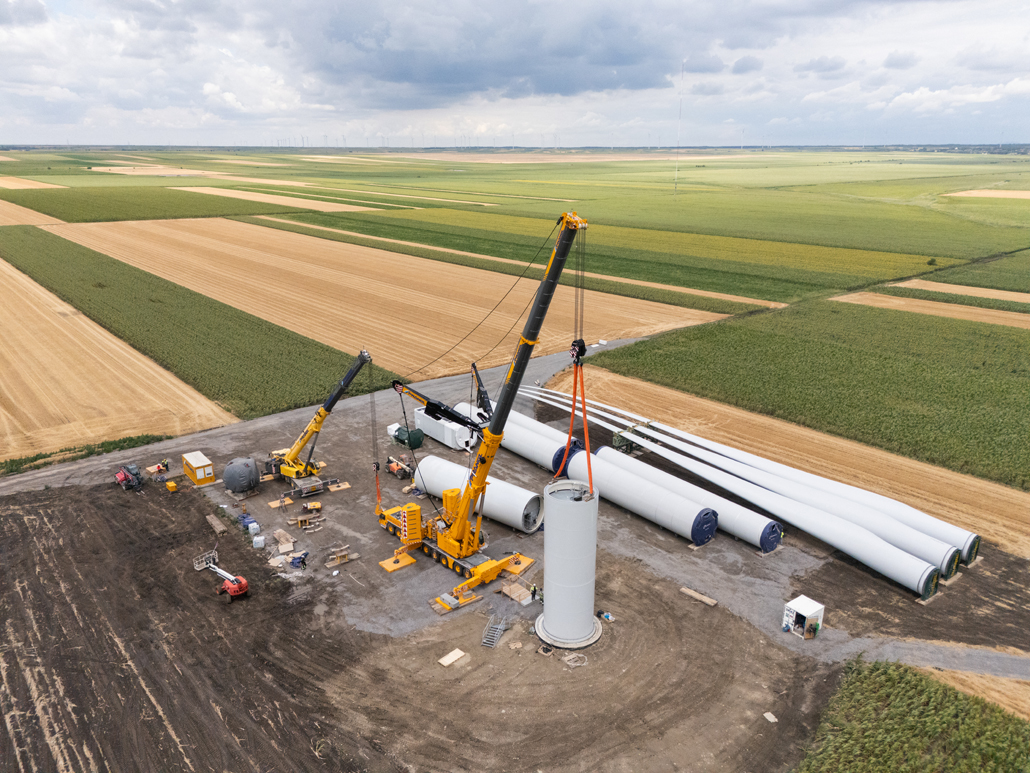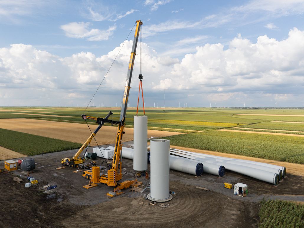 Weil das Gewicht von zwei Turmteilen zu schwer ist, erwies sich in diesem Fall ein 700 Tonnen Teleskopkran als die perfekte Wahl. Er wurde aufgrund seiner Spezifikationen und der Wirtschaftlichkeit zum Hauptkran gewählt. Er lässt sich sehr schnell versetzen und erhöht damit die Geschwindigkeit der Abläufe. Wäre ein größerer Teleskop- oder Gittermastkran zum Einsatz gekommen, wäre dies für den Kunden mit mehr Kosten und größeren Zeitaufwand verbunden gewesen. Denn diese Krane haben mehr Ausrüstung, arbeiten langsamer und lassen sich auch langsamer versetzen.