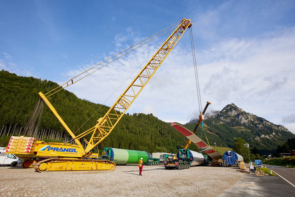 Mittels Hochseeschiffen wurden alle Komponenten im Hafen Ploce (Kroatien) angeliefert, mit den dortigen Hafenkränen entladen und auf einer eigens dafür reservierten Abstellfläche zwischengelagert. Die Einzelteile wurden sodann in einer klar definierten Reihenfolge mit einem entsprechenden Spezialequipment – wie beispielsweise der Flügeltransportvorrichtung PFTV – direkt in den Windpark transportiert. Dabei wurden Transportlängen bis zu 74 Meter erreicht. Zusätzlich musste ein Grenzübergang aufgrund von Engstellen massiv umgebaut werden. Auch hier wirkte Prangl federführend mit.