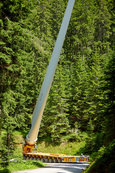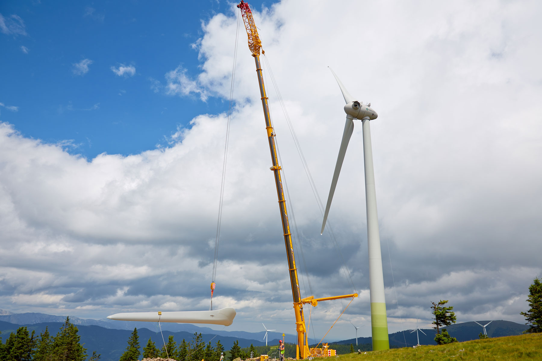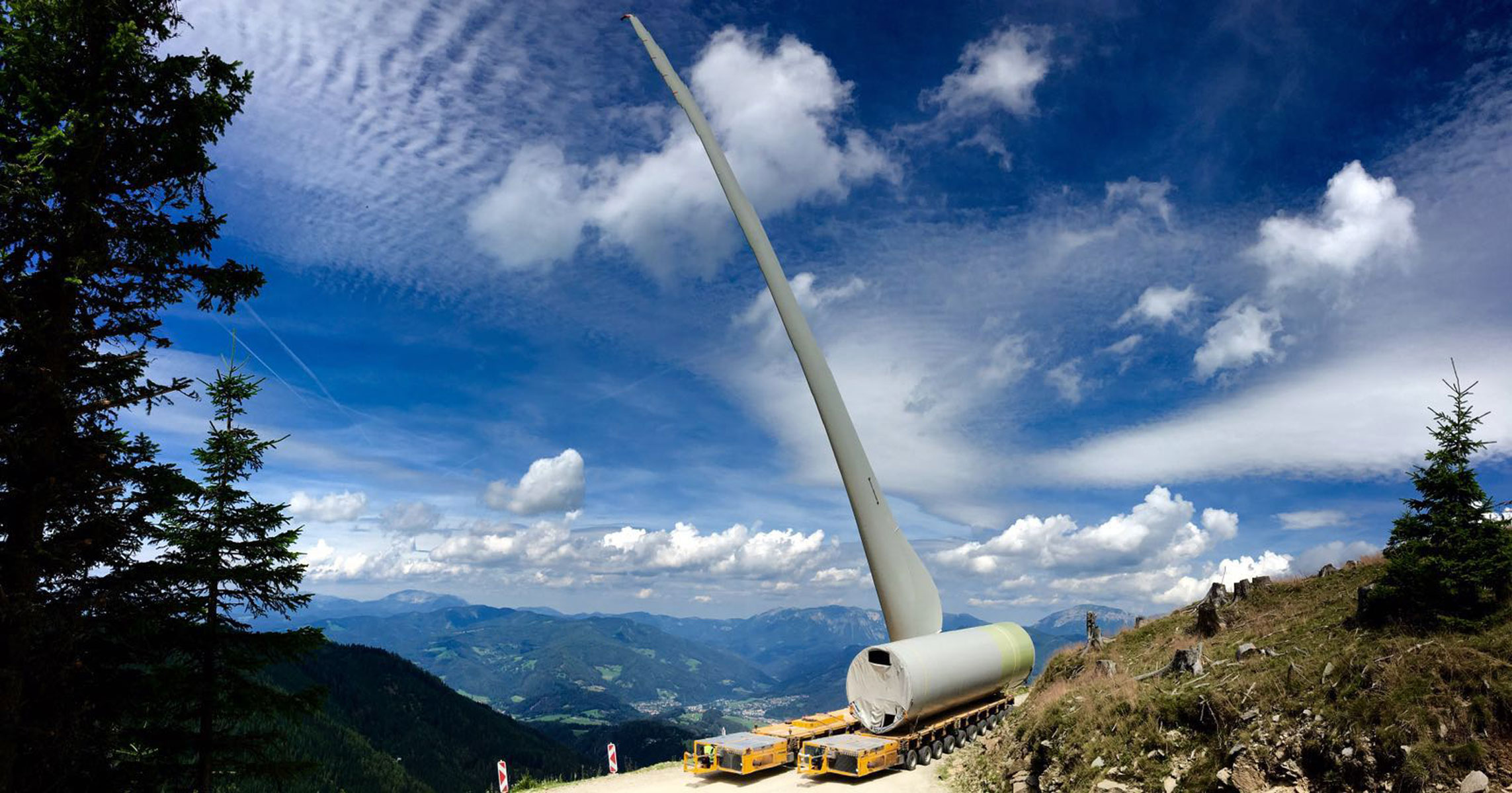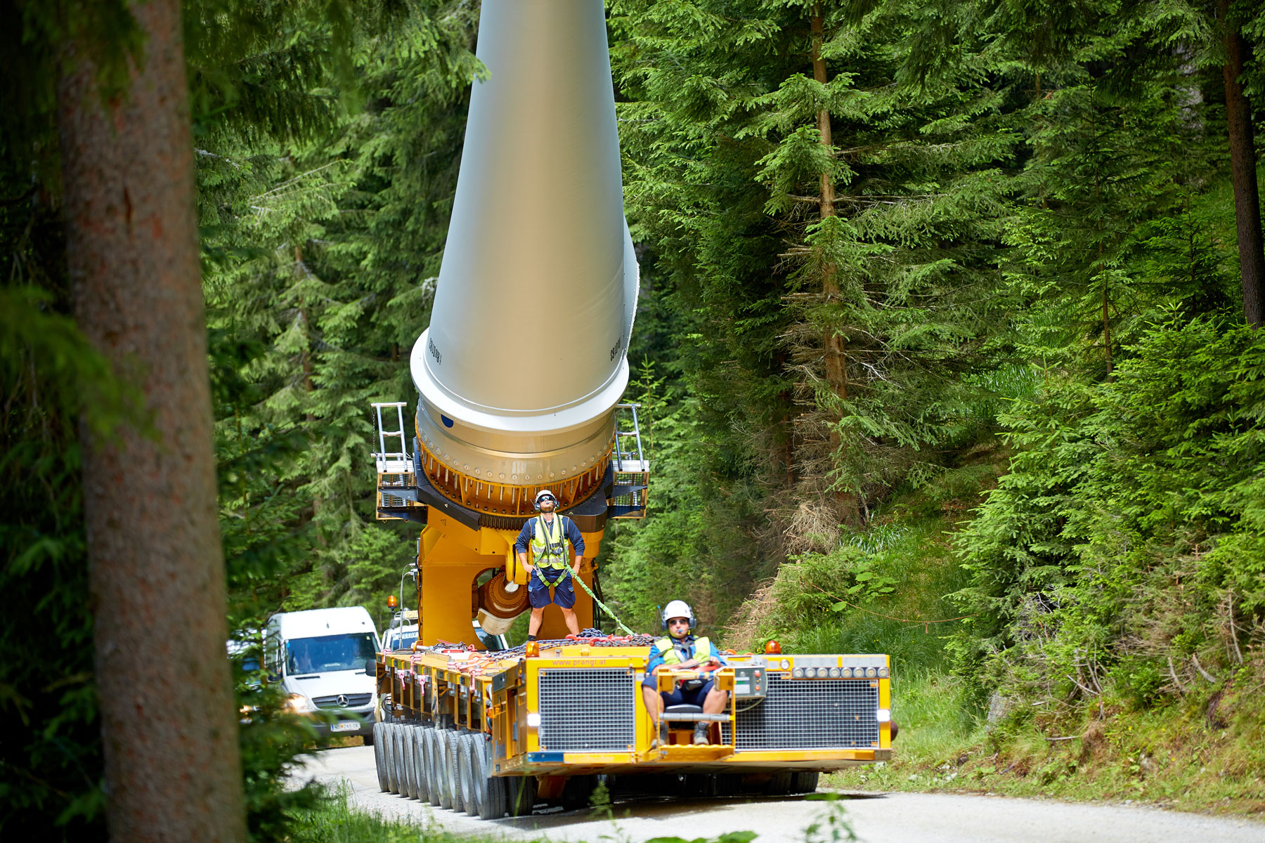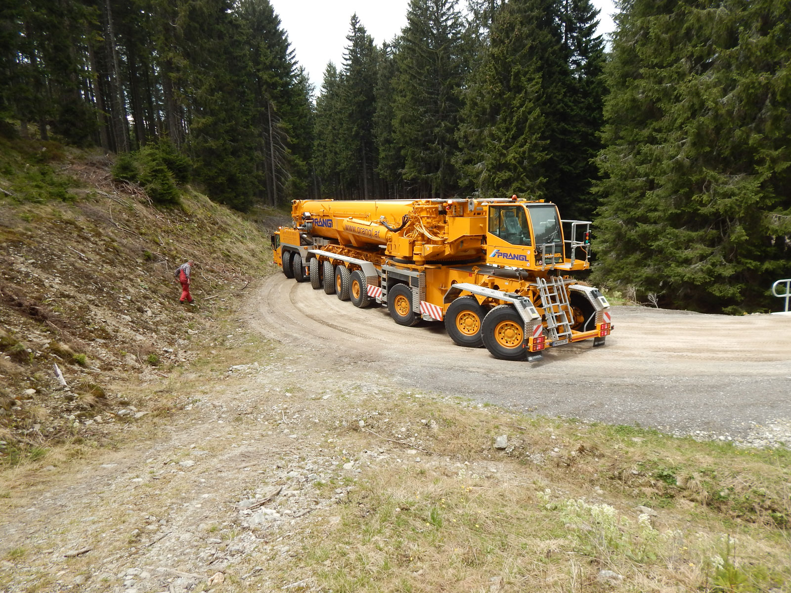 Als größter Naturraumbewirtschafter forcieren die österreichischen Bundesforste die Energiegewinnung aus erneuerbaren Ressourcen. Der Windpark Pretul wird auf der Pretulalpe auf rund 1.600 Meter Seehöhe errichtet und Aufgabe des Experten-Teams von Prangl war es auch diesmal, das passende Transport-, Zwischenlagerungs- und Hebekonzept zu finden.