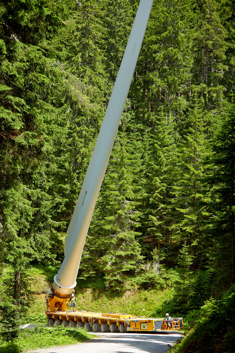 Mit dieser neuen Krandimension in Österreich konnte sich Prangl von allen anderen Konzepten deutlich abheben. Neben dieser neuen Krantechnik kam auch wieder das bewährte Flügeltransportsystem PFTV 300 zum Einsatz. Mittlerweile wurden damit 150 Rotorblätter erfolgreich transportiert. Diese von Prangl initiierte und stark mitentwickelte Flügel-Transportvorrichtung ist bei der professionellen Abwicklung alpiner Windparks nicht mehr wegzudenken. Die Eingriffe in die Natur können so auf ein Minimum reduziert werden. Zudem kann der gesamte Errichtungsprozess weit effizienter gestaltet werden.