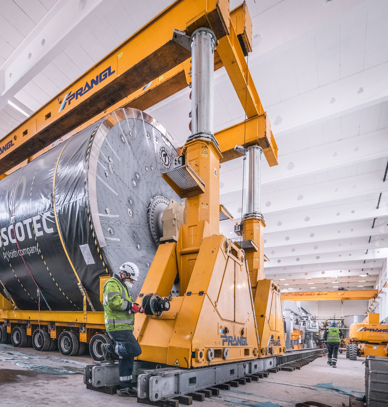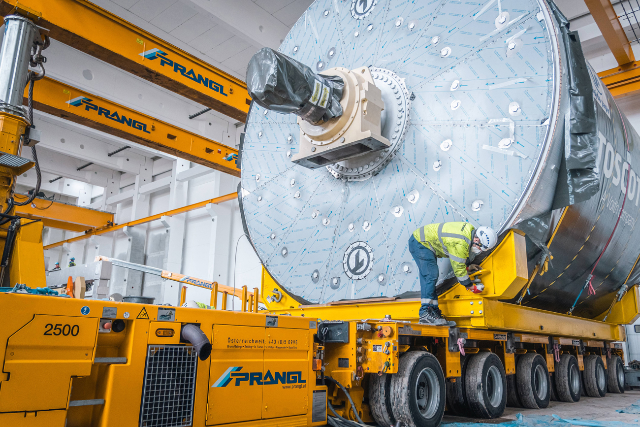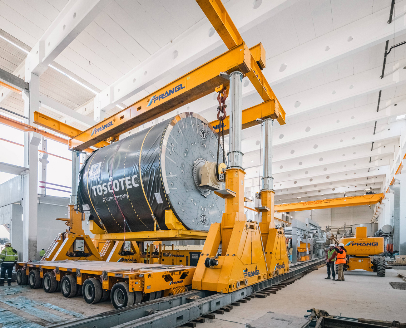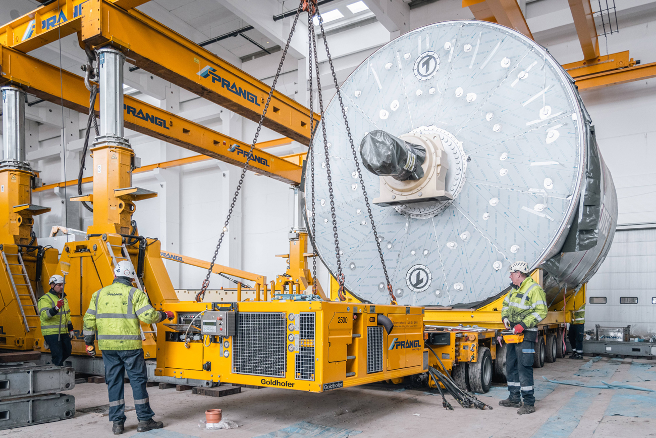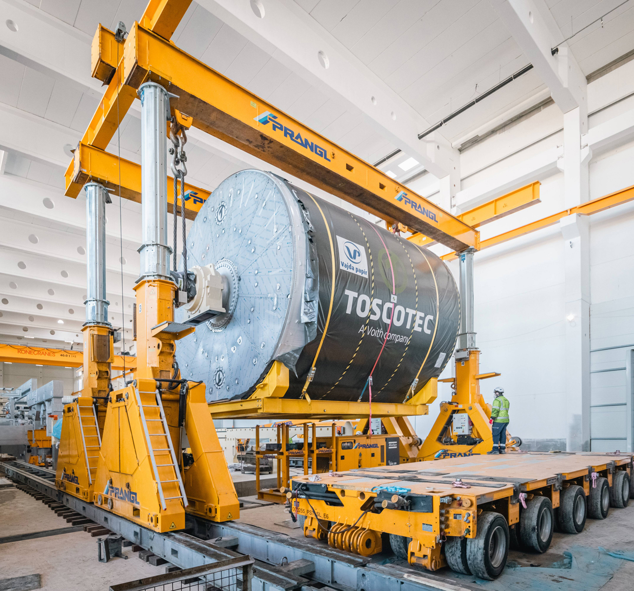 Für den Ausbau der Papierfabrik im ungarischen Dunaföldvár wurden Experten von Prangl hinzugezogen. Der 145 Tonnen schwere Yankee-Papiertrockenzylinder musste in die Halle gebracht und „gezogen“ werden – im wahrsten Sinne des Wortes, da aufgrund der vorbereiteten Installationen wenig Platz war.