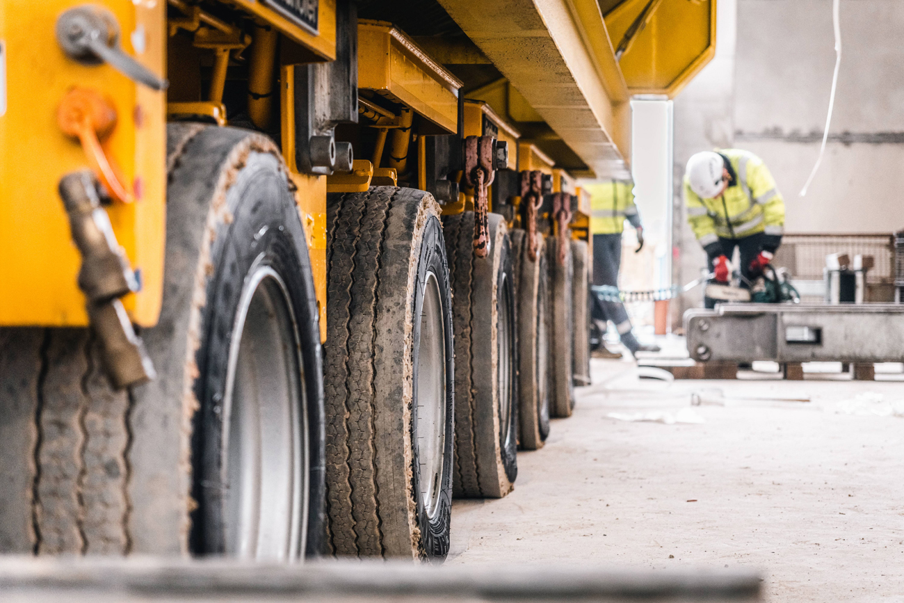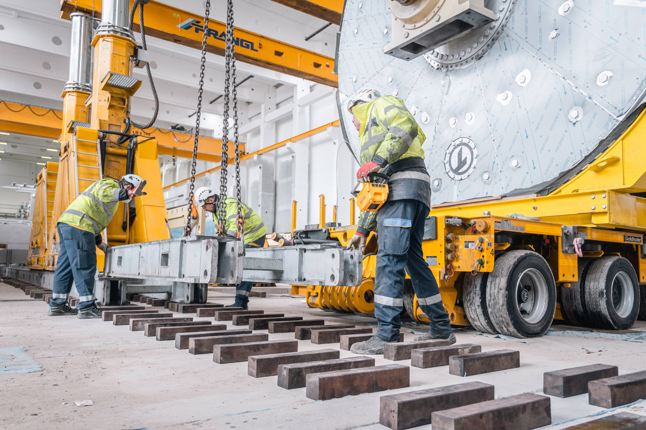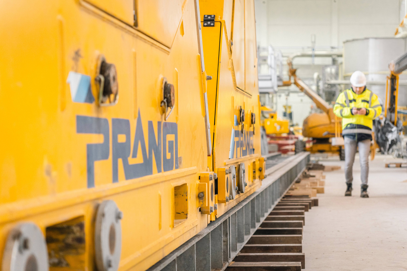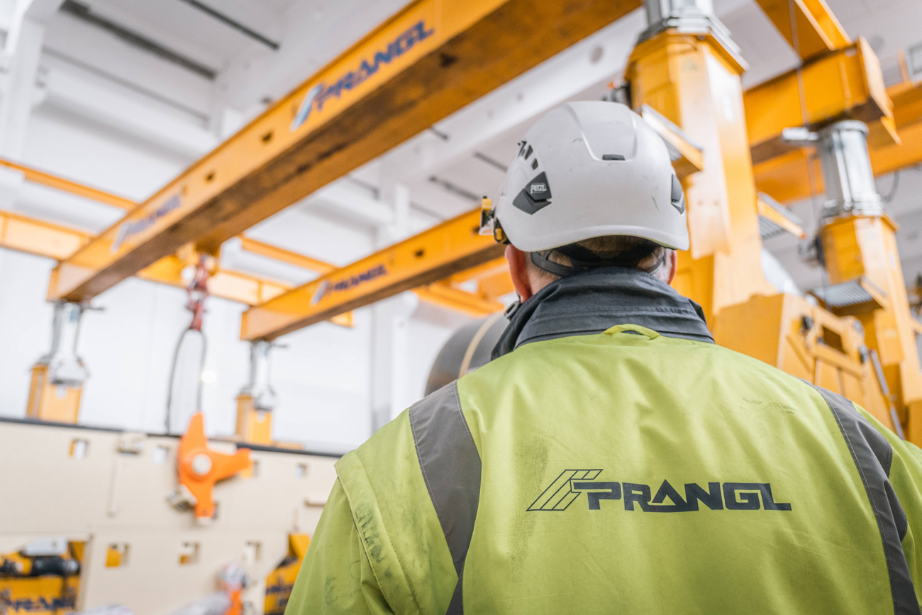Wie bei allen Aufgaben, die Prangl übertragen werden, mussten sich die Experten bei der Planung des Ablaufes für die geeigneten Geräte entscheiden. Schnell war klar, dass der Hauptakteur in diesem Fall ein hydraulisches Hubportal sein soll. Dieses ist nicht nur bei beschränkten Platzverhältnissen optimal, es ermöglicht zudem mit seinen mehrfach teleskopierbaren Hydraulikhebern und einem speziellen Schienensystem ein exaktes Positionieren der Last. Als Assistenz kamen dazu ein Hubstapler, eine Scheren-Arbeitsbühne und drei Gelenk-Arbeitsbühnen zum Einsatz.